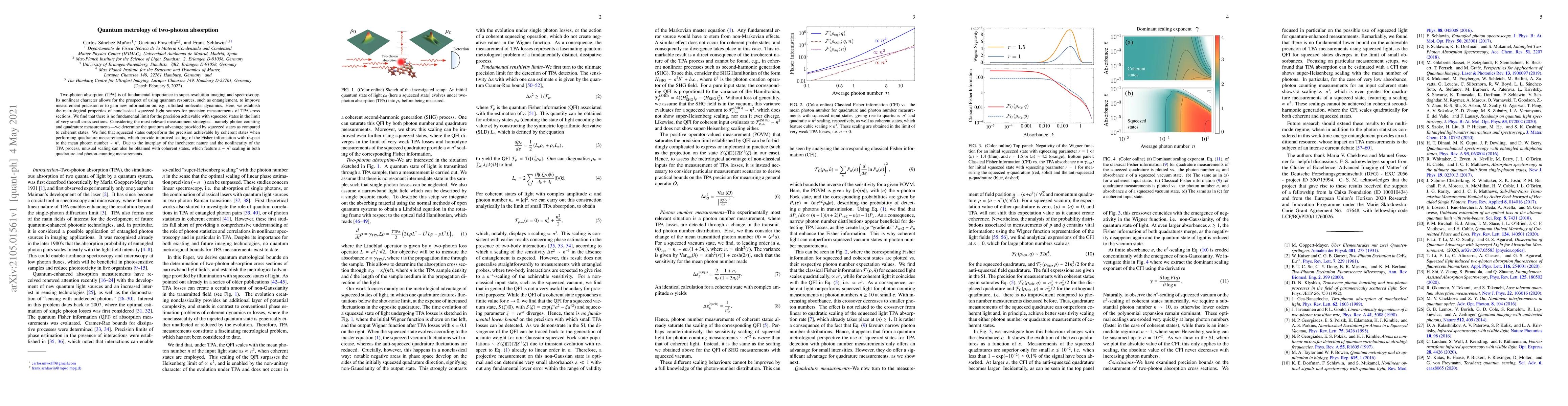 The research establishes the metrological properties of nonclassical squeezed light sources for precision measurements of TPA cross sections, comparing photon counting and quadrature measurements to determine the quantum advantage provided by squeezed states over coherent states.