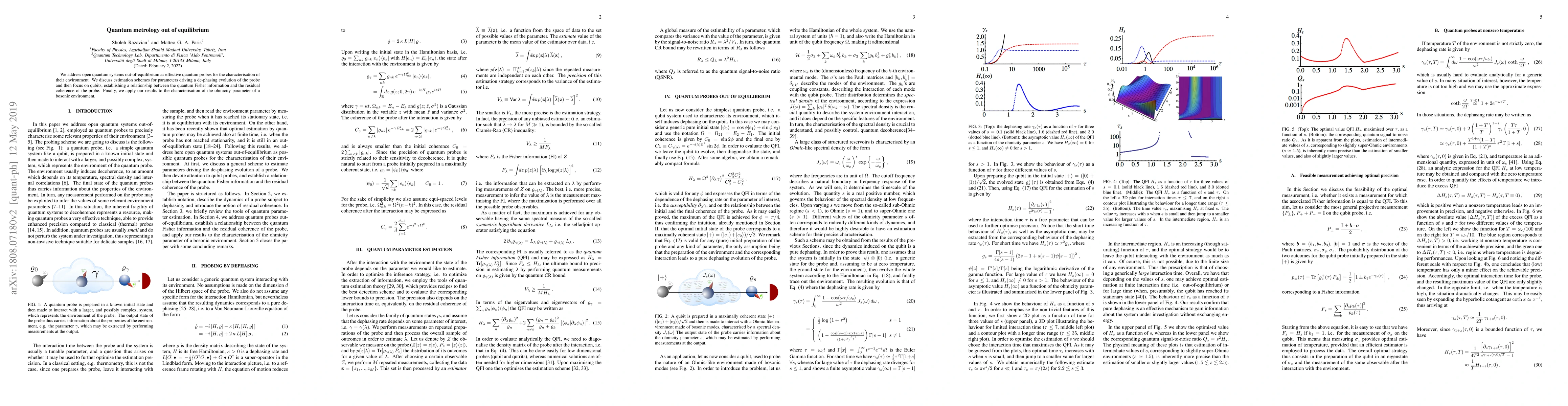 We address open quantum systems out-of-equilibrium as effective quantum probes for the characterisation of their environment. We discuss estimation schemes for parameters driving a de-phasing evolution of the probe and then focus on qubits, establishing a relationship between the quantum Fisher information and the residual coherence of the probe. Finally, we apply our results to the characterisation of the ohmicity parameter of a bosonic environment.