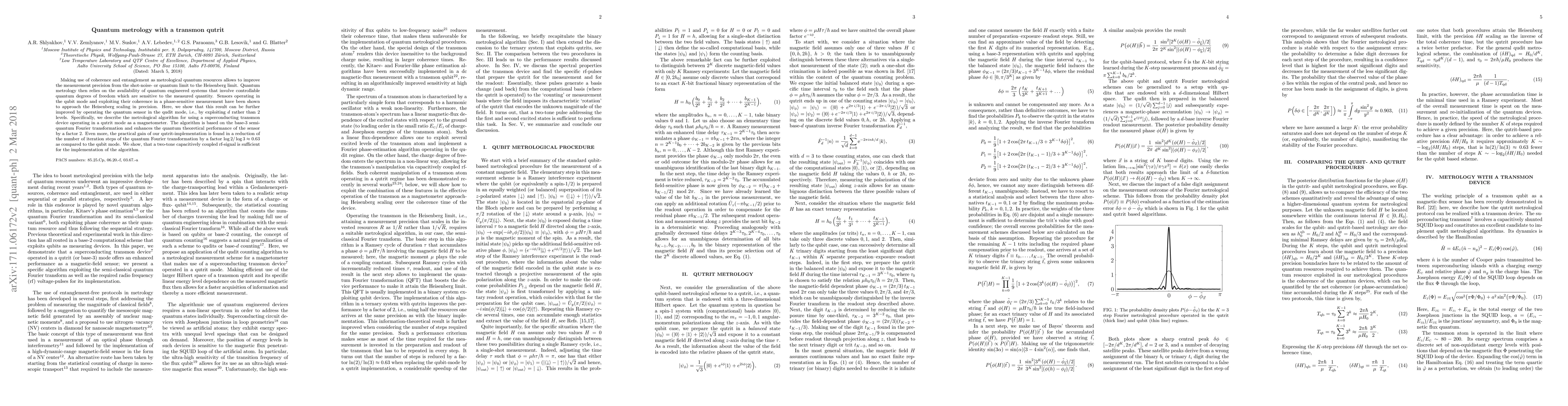 Making use of coherence and entanglement as metrological quantum resources allows to improve the measurement precision from the shot-noise- or quantum limit to the Heisenberg limit. Quantum metrology then relies on the availability of quantum engineered systems that involve controllable quantum degrees of freedom which are sensitive to the measured quantity. Sensors operating in the qubit mode and exploiting their coherence in a phase-sensitive measurement have been shown to approach the Heisenberg scaling in precision. Here, we show that this result can be further improved by operating the quantum sensor in the qudit mode, i.e., by exploiting $d$ rather than 2 levels. Specifically, we describe the metrological algorithm for using a superconducting transmon device operating in a qutrit mode as a magnetometer. The algorithm is based on the base-3 semi-quantum Fourier transformation and enhances the quantum theoretical performance of the sensor by a factor 2. Even more, the practical gain of our qutrit-implementation is found in a reduction of the number of iteration steps of the quantum Fourier transformation by a factor $\log 2/\log 3 \approx 0.63$ as compared to the qubit mode. We show, that a two-tone capacitively coupled rf-signal is sufficient for the implementation of the algorithm.
