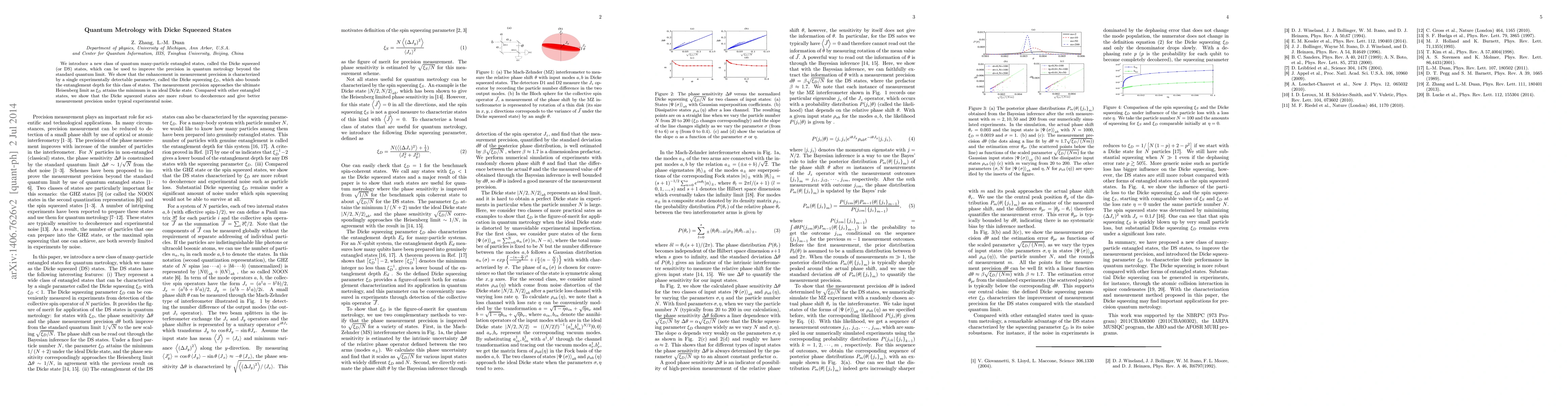 This paper proposes Dicke squeezed states to enhance precision in quantum metrology beyond the standard quantum limit, characterized by the Dicke squeezing parameter $\xi_{D}$. These states are more robust to decoherence and provide better measurement precision compared to other entangled states.