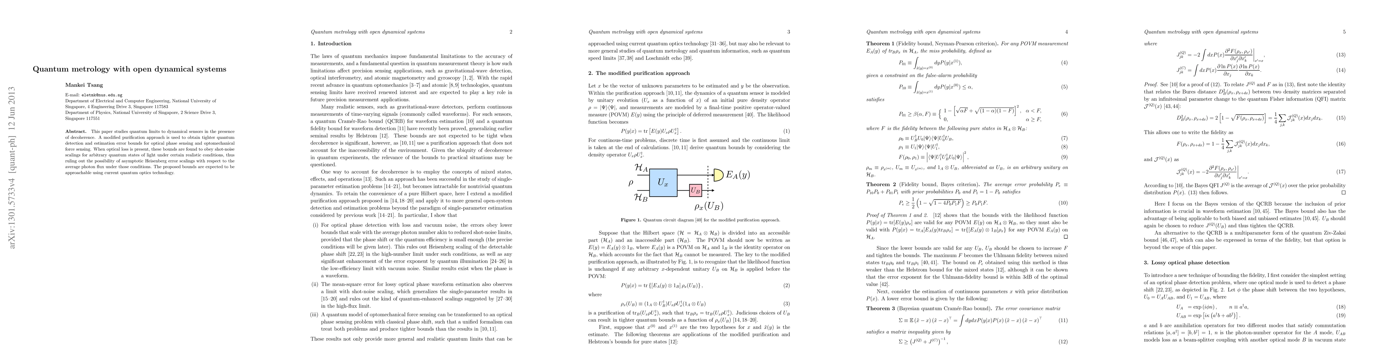 This paper studies quantum limits to dynamical sensors in the presence of decoherence. A modified purification approach is used to obtain tighter quantum detection and estimation error bounds for optical phase sensing and optomechanical force sensing. When optical loss is present, these bounds are found to obey shot-noise scalings for arbitrary quantum states of light under certain realistic conditions, thus ruling out the possibility of asymptotic Heisenberg error scalings with respect to the average photon flux under those conditions. The proposed bounds are expected to be approachable using current quantum optics technology.