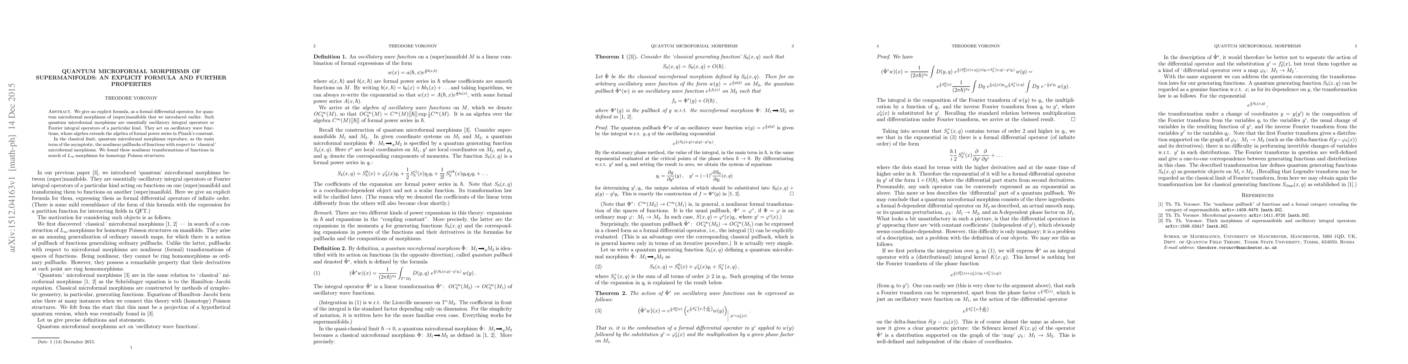 We give an explicit formula, as a formal differential operator, for quantum microformal morphisms of (super)manifolds that we introduced earlier. Such quantum microformal morphisms are essentially oscillatory integral operators or Fourier integral operators of a particular kind. They act on oscillatory wave functions, whose algebra extends the algebra of formal power series in Planck's constant. In the classical limit, quantum microformal morphisms reproduce, as the main term of the asymptotic, the nonlinear pullbacks of functions with respect to `classical' microformal morphisms. We found these nonlinear transformations of functions in search of $L_{\infty}$-morphisms for homotopy Poisson structures.