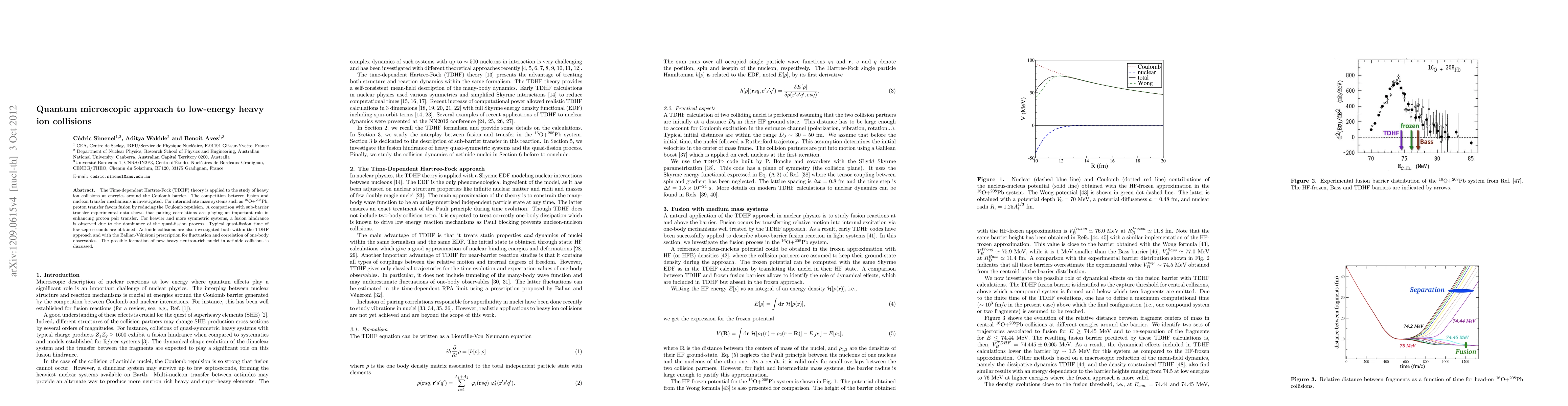 This paper applies Time-dependent Hartree-Fock (TDHF) theory to study low-energy heavy ion collisions, finding that proton transfer enhances fusion in intermediate mass systems by reducing Coulomb repulsion. For symmetric, heavier systems, quasi-fission dominates, leading to fusion hindrance.