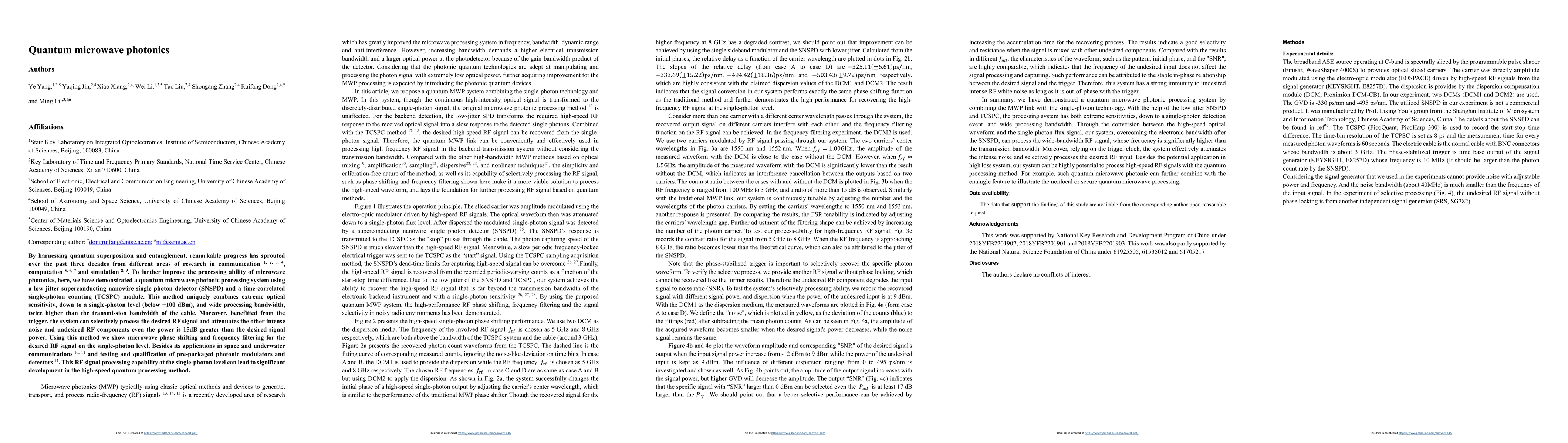 Researchers have developed a quantum microwave photonics system that can process RF signals at the single-photon level, offering improved sensitivity and bandwidth, with potential applications in space and underwater communications.
