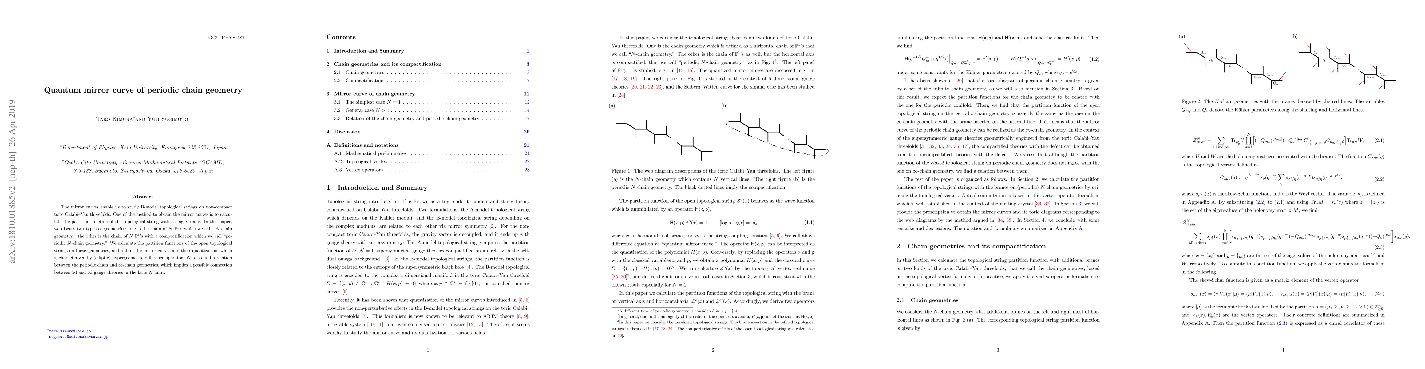 Researchers calculate partition functions for topological strings on periodic chain geometries, finding mirror curves and connections between 5d and 6d gauge theories.