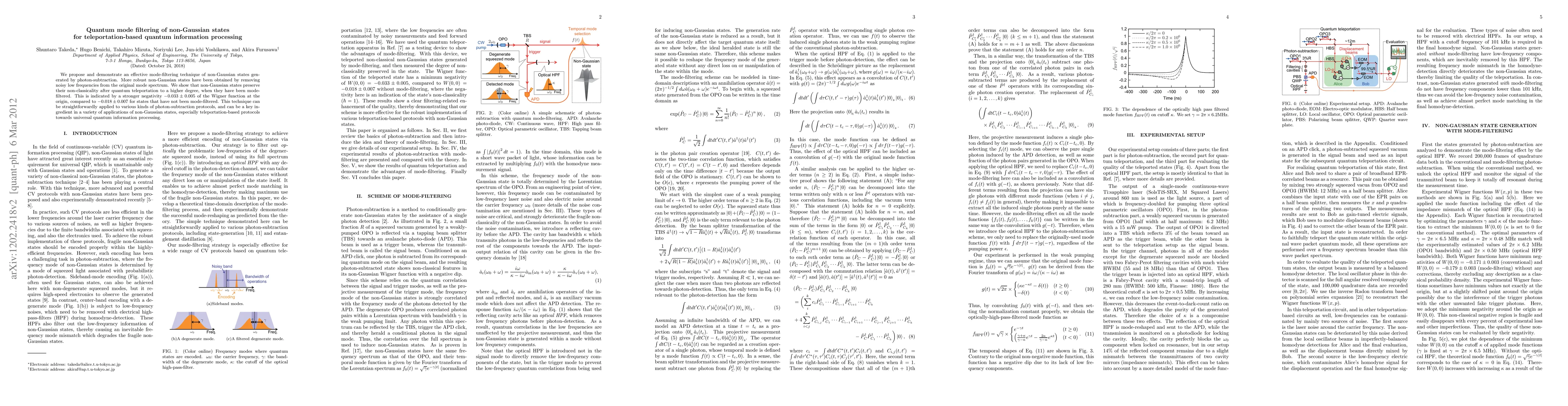 This paper proposes a method to filter non-Gaussian quantum states generated by photon-subtraction, enhancing their robustness by removing low-frequency noise. The mode-filtered states show better preservation of non-classicality during quantum teleportation, as indicated by a stronger negativity in their Wigner function.