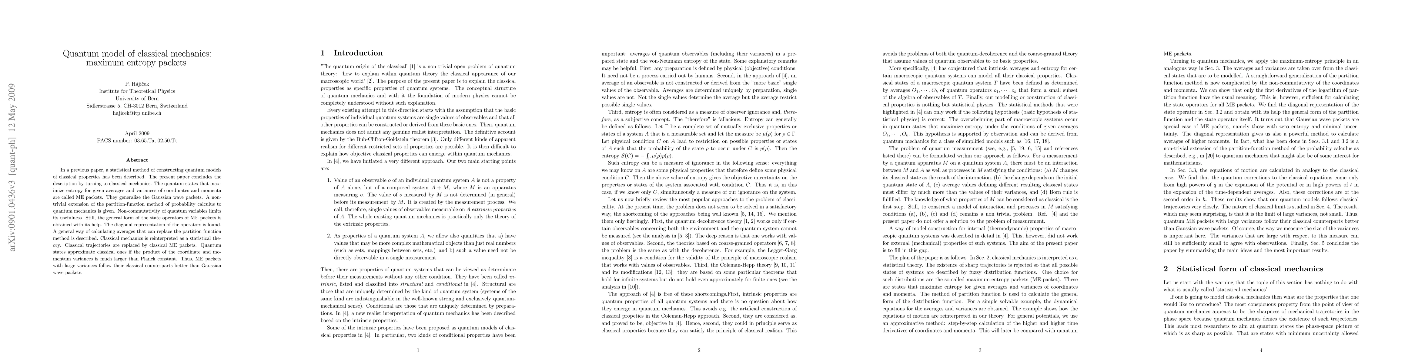Quantum models of classical mechanics: maximum entropy packets can reinterpret classical mechanics as a statistical theory, approximating quantum states for certain conditions.
