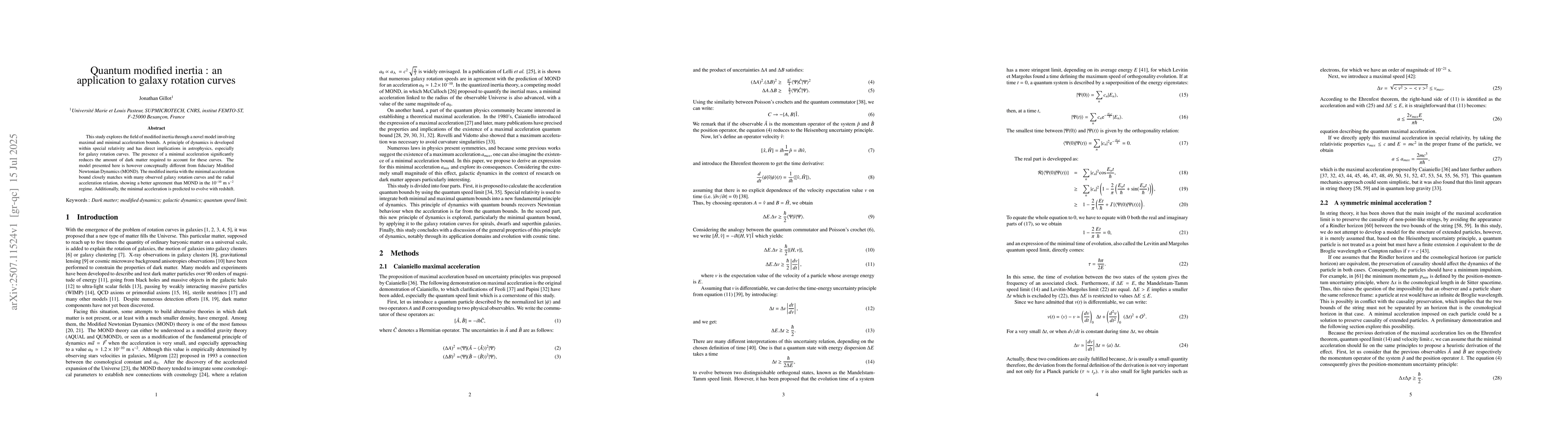 This study explores the field of modified inertia through a novel model involving maximal and minimal acceleration bounds. A principle of dynamics is developed within special relativity and has direct implications in astrophysics, especially for galaxy rotation curves. The presence of a minimal acceleration significantly reduces the amount of dark matter required to account for these curves. The model presented here is however conceptually different from fiduciary Modified Newtonian Dynamics (MOND). The modified inertia with the minimal acceleration bound closely matches with many observed galaxy rotation curves and the radial acceleration relation, showing a better agreement than MOND in the $10^{-10}$ m s$^{-2}$ regime. Additionally, the minimal acceleration is predicted to evolve with redshift.