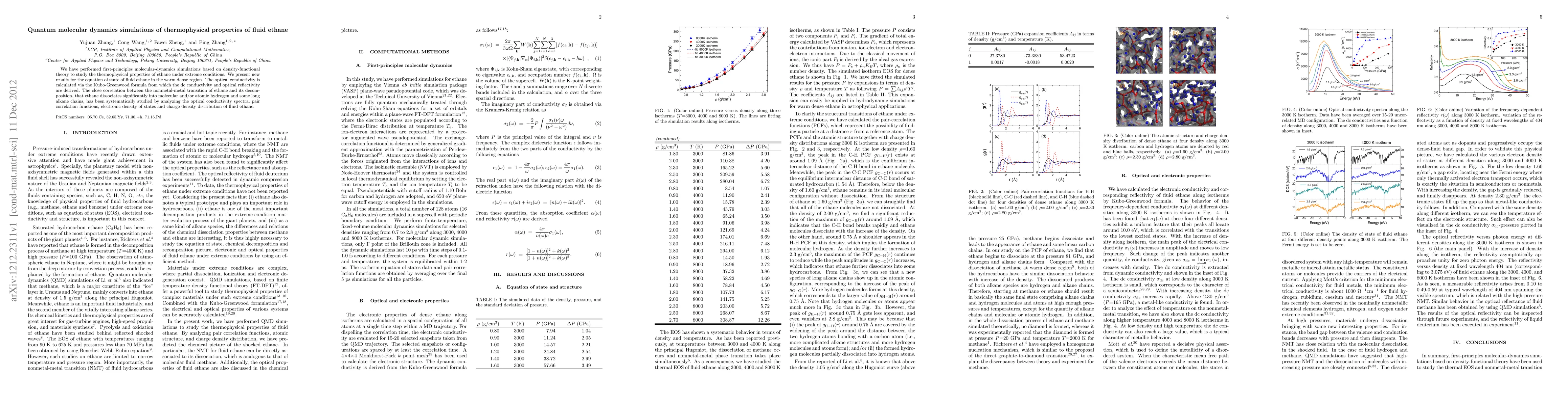 This paper reports on first-principles molecular-dynamics simulations of ethane's thermophysical properties under extreme conditions, revealing the equation of state in the warm dense region and the dc conductivity and optical reflectivity derived from optical conductivity calculations. The study also investigates the nonmetal-metal transition and decomposition of ethane, correlating these phenomena with optical conductivity spectra and electronic structure analyses.
