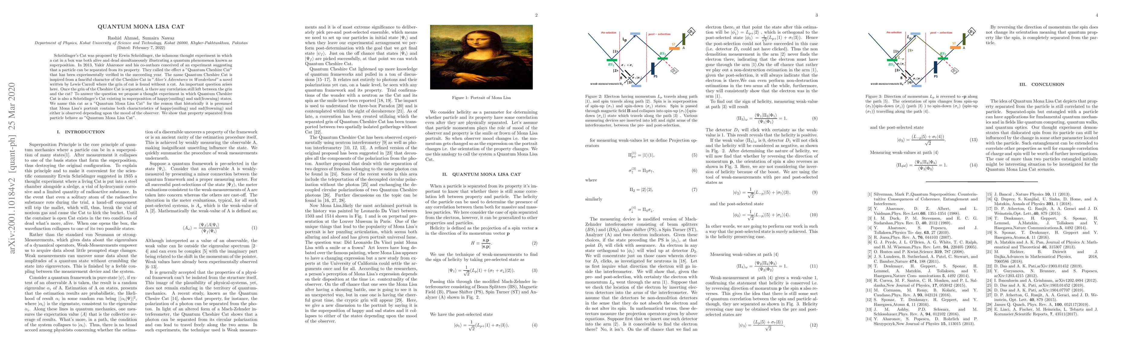 The paper proposes a thought experiment called the "Quantum Mona Lisa Cat," which extends the concept of the Quantum Cheshire Cat to illustrate how a particle's property can exist in superposition of emotional states, akin to the dual expressions of Mona Lisa's portrait, depending on the observer's perspective. This experiment explores the correlation between separated quantum properties and their original particles.