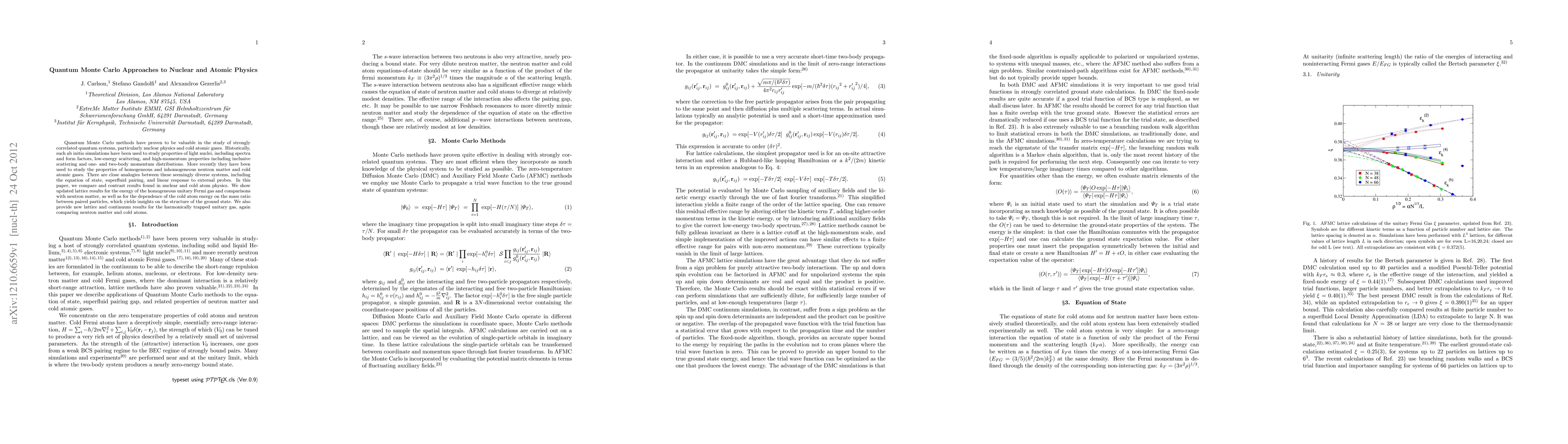 Quantum Monte Carlo methods reveal similarities between nuclear physics and cold atomic gases, including insights into superfluid pairing and ground state structure. These findings provide a new understanding of the behavior of strongly correlated quantum systems.