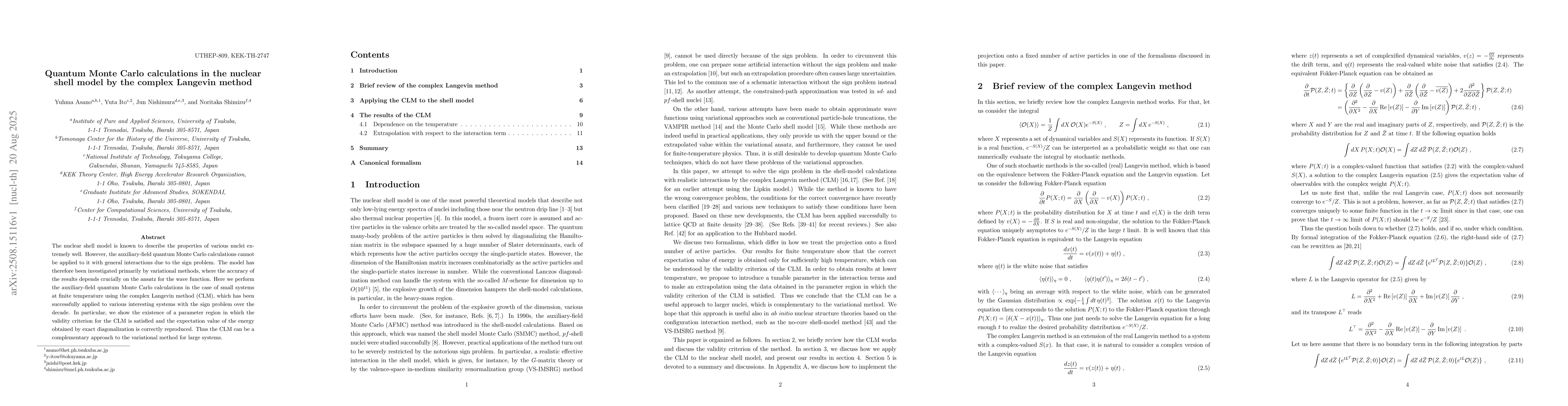 The nuclear shell model is known to describe the properties of various nuclei extremely well. However, the auxiliary-field quantum Monte Carlo calculations cannot be applied to it with general interactions due to the sign problem. The model has therefore been investigated primarily by variational methods, where the accuracy of the results depends crucially on the ansatz for the wave function. Here we perform the auxiliary-field quantum Monte Carlo calculations in the case of small systems at finite temperature using the complex Langevin method (CLM), which has been successfully applied to various interesting systems with the sign problem over the decade. In particular, we show the existence of a parameter region in which the validity criterion for the CLM is satisfied and the expectation value of the energy obtained by exact diagonalization is correctly reproduced. Thus the CLM can be a complementary approach to the variational method for large systems.
