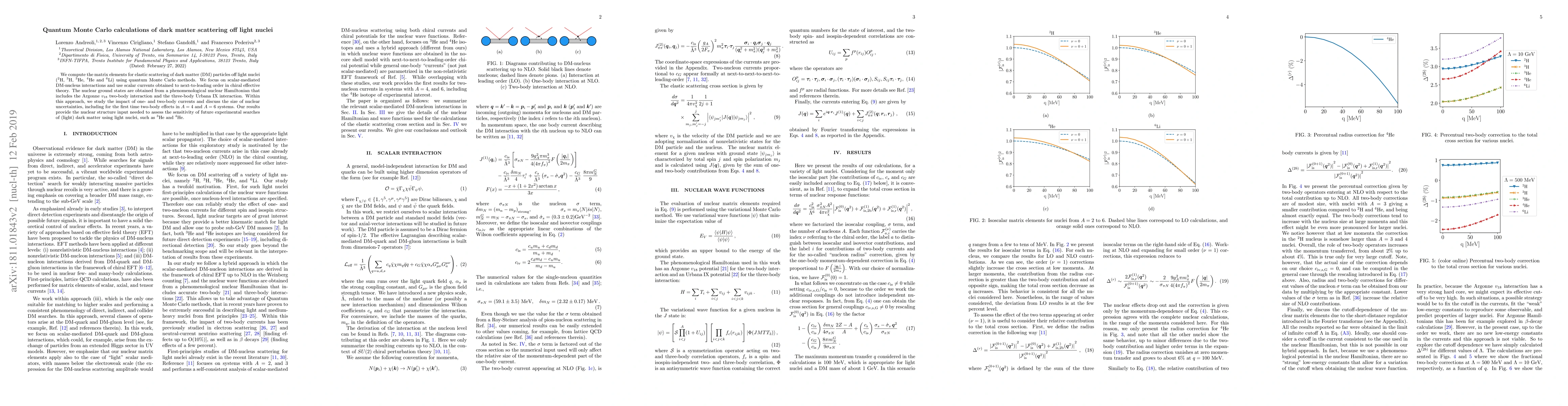 This paper uses quantum Monte Carlo methods to calculate matrix elements for dark matter scattering off light nuclei, focusing on scalar-mediated interactions. It assesses the impact of one- and two-body currents and discusses nuclear uncertainties, providing crucial nuclear structure inputs for future dark matter detection experiments.