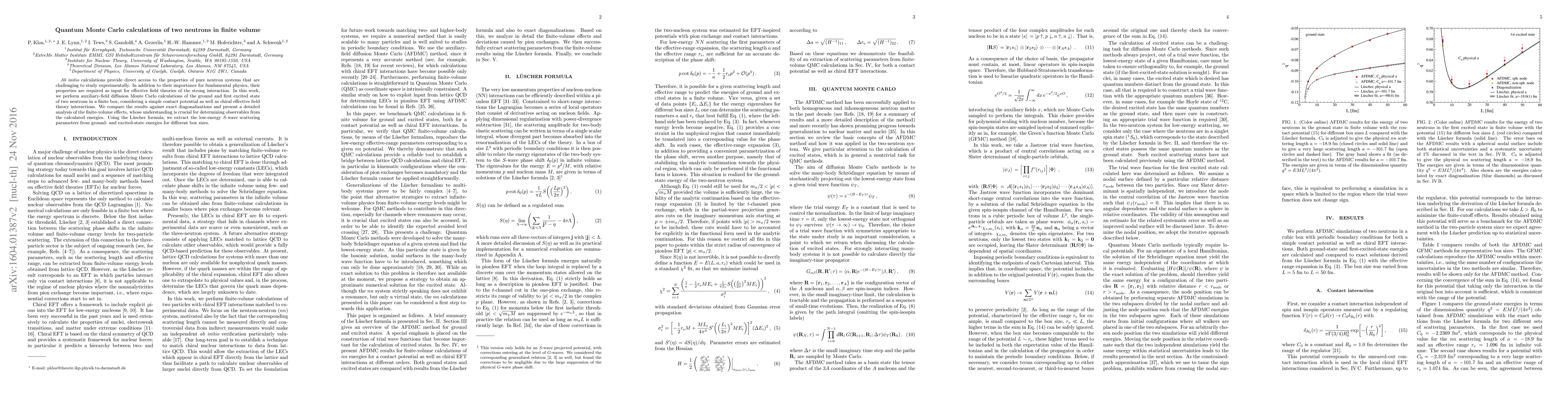 This paper uses quantum Monte Carlo methods to study the ground and first excited states of two neutrons in a finite volume, comparing results with exact diagonalizations and analyzing finite-volume effects. The L\"uscher formula is applied to extract low-energy S-wave scattering parameters from calculated energies.