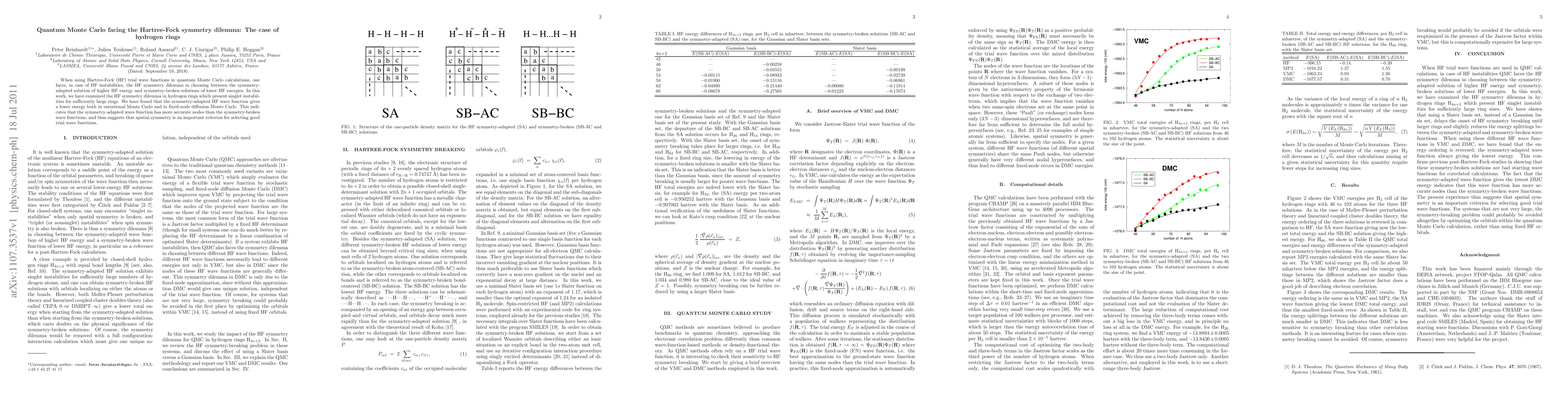 This study investigates the Hartree-Fock symmetry dilemma in quantum Monte Carlo calculations for hydrogen rings, revealing that the symmetry-adapted HF wave function provides a lower energy compared to symmetry-broken solutions, suggesting spatial symmetry is crucial for selecting effective trial wave functions.
