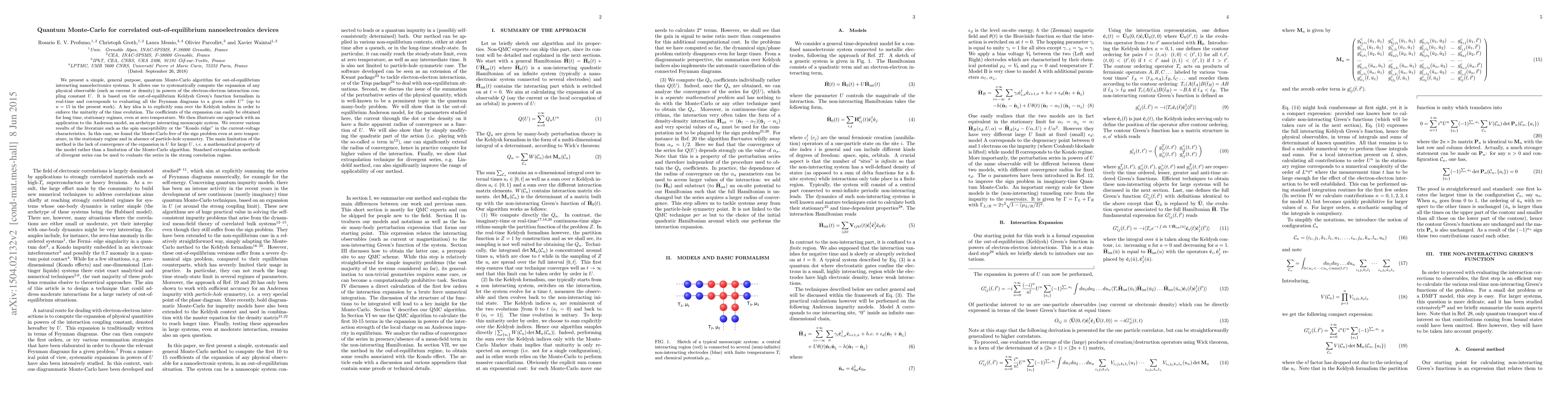 This paper introduces a quantum Monte-Carlo algorithm for simulating out-of-equilibrium nanoelectronics systems, enabling the computation of physical observables in powers of electron-electron interaction. The method successfully applies to the Anderson model, demonstrating the absence of the sign problem and recovering known results.