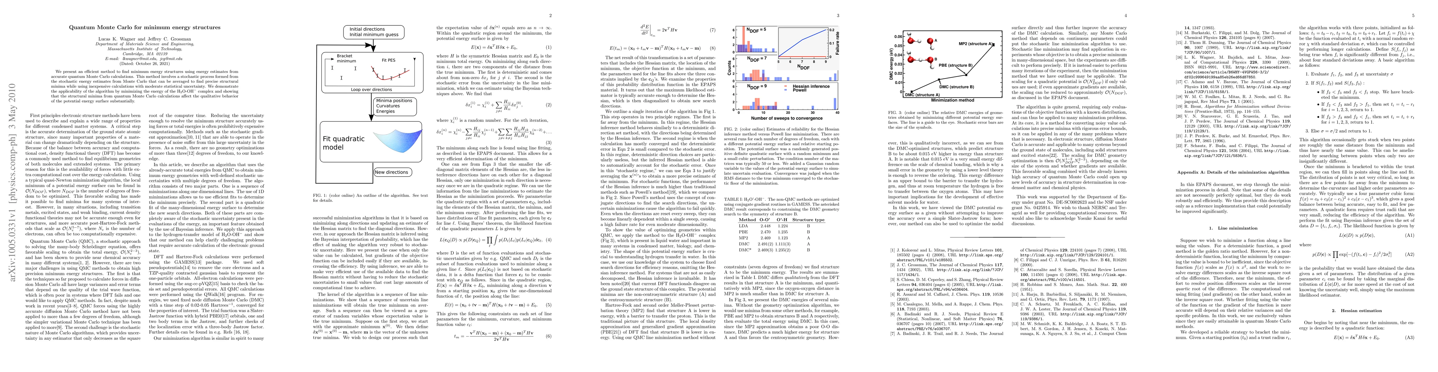 This paper introduces a novel quantum Monte Carlo method for identifying minimum energy structures, leveraging stochastic energy estimates to achieve precise structural minima with affordable computational costs. The method's effectiveness is demonstrated through the minimization of the H2O-OH- complex, revealing significant impacts on the potential energy surface.