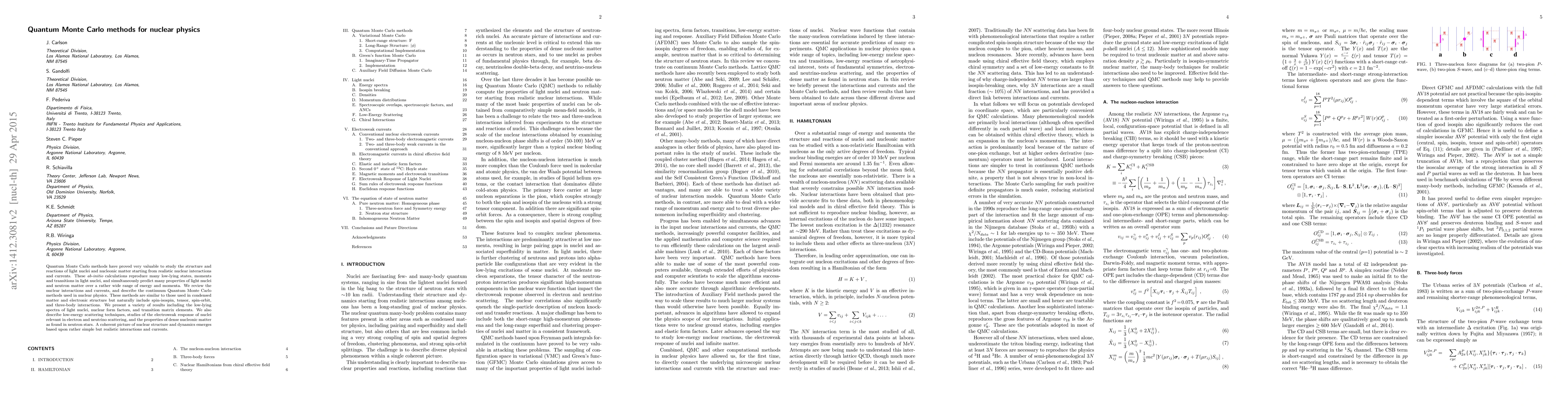 This paper reviews Quantum Monte Carlo methods applied to nuclear physics, highlighting their success in modeling light nuclei and nucleonic matter. It discusses the methods used to reproduce low-lying states and predict properties across a wide energy range, emphasizing the inclusion of complex interactions and presenting results from various nuclear phenomena.