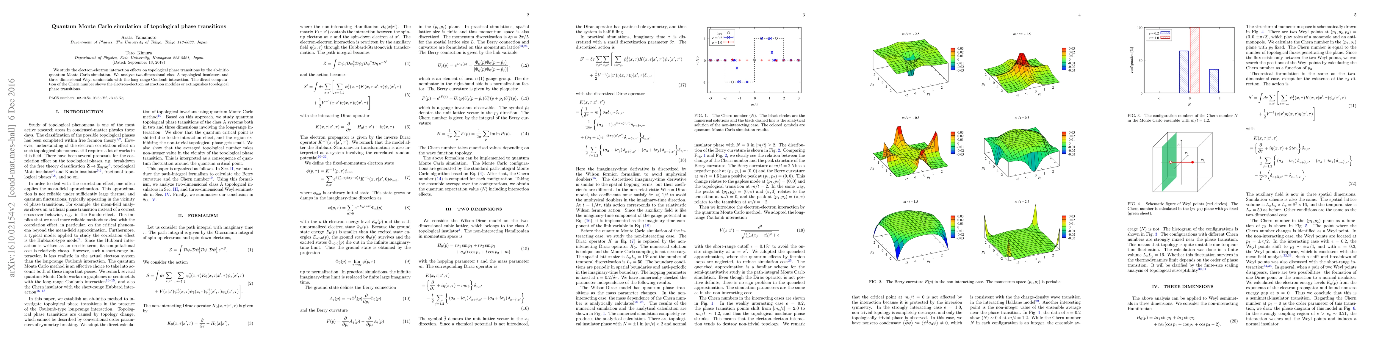 We study the electron-electron interaction effects on topological phase transitions by the ab-initio quantum Monte Carlo simulation. We analyze two-dimensional class A topological insulators and three-dimensional Weyl semimetals with the long-range Coulomb interaction. The direct computation of the Chern number shows the electron-electron interaction modifies or extinguishes topological phase transitions.