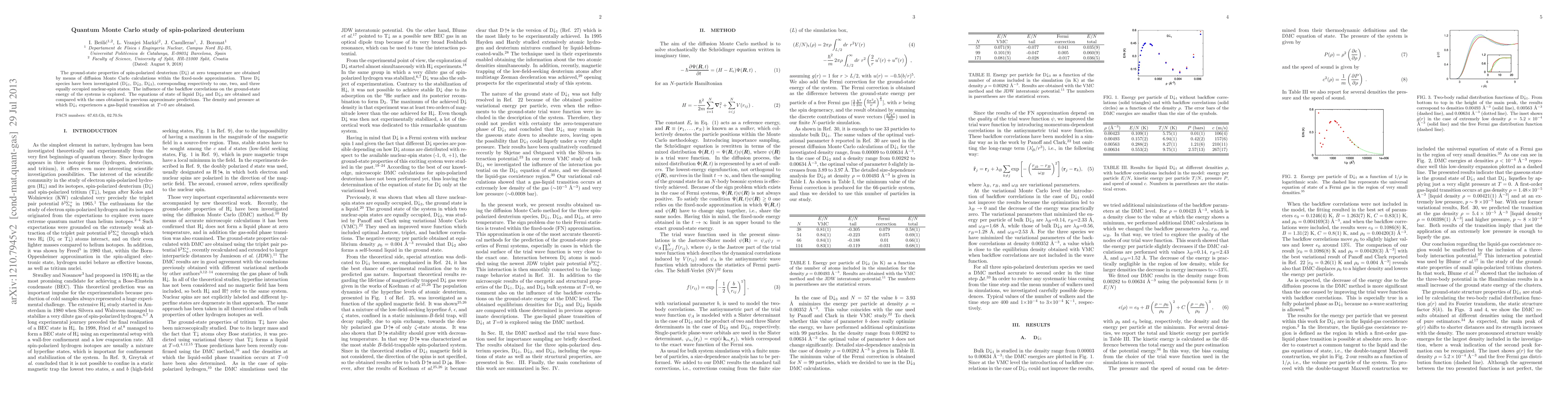 The ground state properties of spin-polarized deuterium (D$\downarrow$) at zero temperature are obtained by means of the diffusion Monte Carlo calculations within the fixed-node approximation. Three D$\downarrow$ species have been investigated (D$\downarrow_1$, D$\downarrow_2$, D$\downarrow_3$), corresponding respectively to one, two and three equally occupied nuclear spin states. Influence of the backflow correlations on the ground state energy of the systems is explored. The equilibrium densities for D$\downarrow_2$ and D$\downarrow_3$ liquids are obtained and compared with ones obtained in previous approximate prediction. The density and the pressure at which the gas-liquid phase transition occurs at $T$=0 is obtained for D$\downarrow_1$.