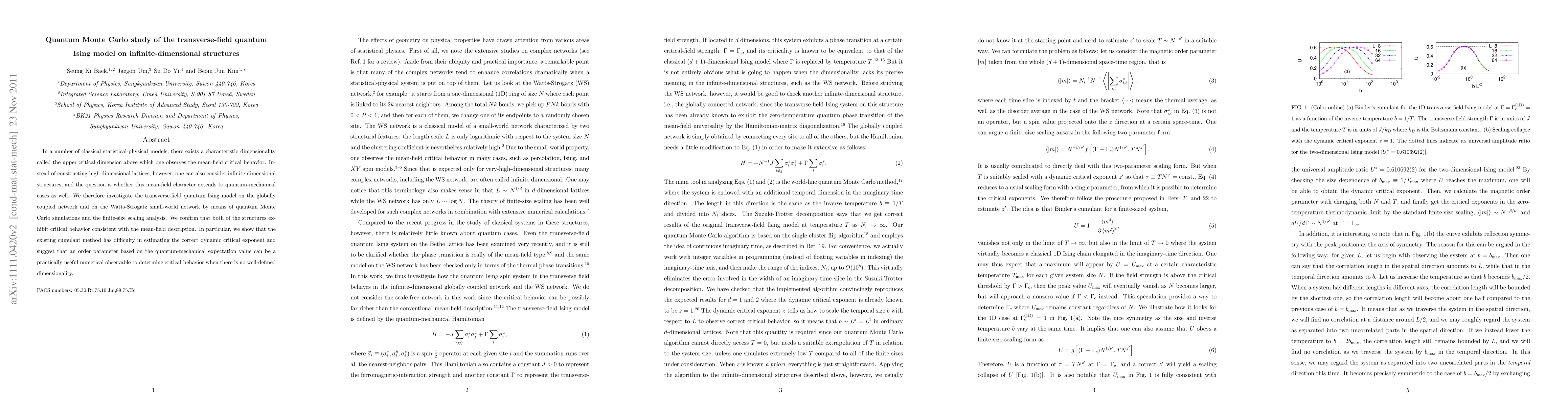 This paper uses quantum Monte Carlo simulations to study the transverse-field quantum Ising model on infinite-dimensional structures, confirming mean-field critical behavior. It suggests that a quantum-mechanical expectation value-based order parameter is useful for determining critical behavior in systems without a well-defined dimensionality.