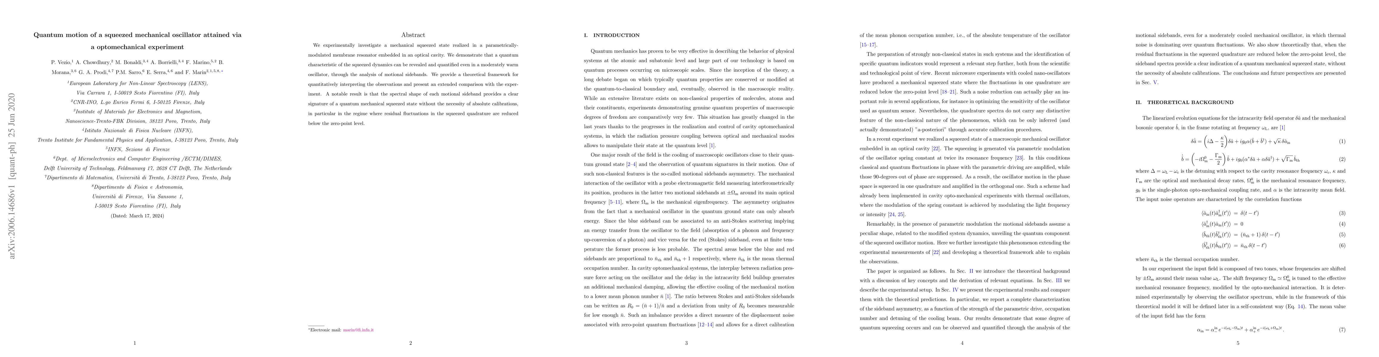 This paper experimentally realizes a squeezed mechanical state in a modulated membrane resonator within an optical cavity, demonstrating quantum characteristics through sideband analysis. The spectral shape of motional sidebands serves as a clear signature of the squeezed state, even in moderately warm conditions, without requiring absolute calibrations.