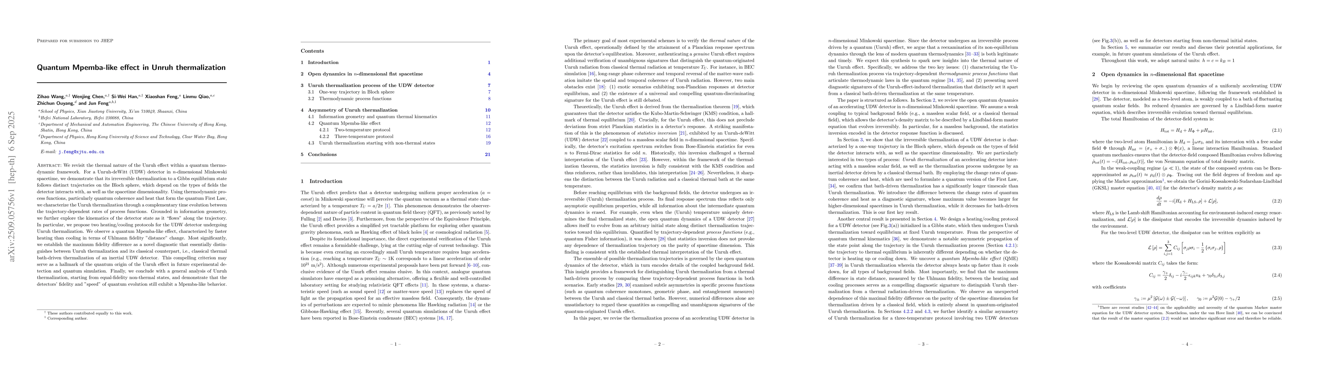 We revisit the thermal nature of the Unruh effect within a quantum thermodynamic framework. For a Unruh-deWitt (UDW) detector in $n$-dimensional Minkowski spacetime, we demonstrate that its irreversible thermalization to a Gibbs equilibrium state follows distinct trajectories on the Bloch sphere, which depend on the types of fields the detector interacts with, as well as the spacetime dimensionality. Using thermodynamic process functions, particularly quantum coherence and heat that form the quantum First Law, we characterize the Unruh thermalization through a complementary time evolution between the trajectory-dependent rates of process functions. Grounded in information geometry, we further explore the kinematics of the detector state as it "flows" along the trajectory. In particular, we propose two heating/cooling protocols for the UDW detector undergoing Unruh thermalization. We observe a quantum Mpemba-like effect, characterized by faster heating than cooling in terms of Uhlmann fidelity "distance" change. Most significantly, we establish the maximum fidelity difference as a novel diagnostic that essentially distinguishes between Unruh thermalization and its classical counterpart, i.e., classical thermal bath-driven thermalization of an inertial UDW detector. This compelling criterion may serve as a hallmark of the quantum origin of the Unruh effect in future experimental detection and quantum simulation. Finally, we conclude with a general analysis of Unruh thermalization, starting from equal-fidelity non-thermal states, and demonstrate that the detectors' fidelity and "speed" of quantum evolution still exhibit a Mpemba-like behavior.