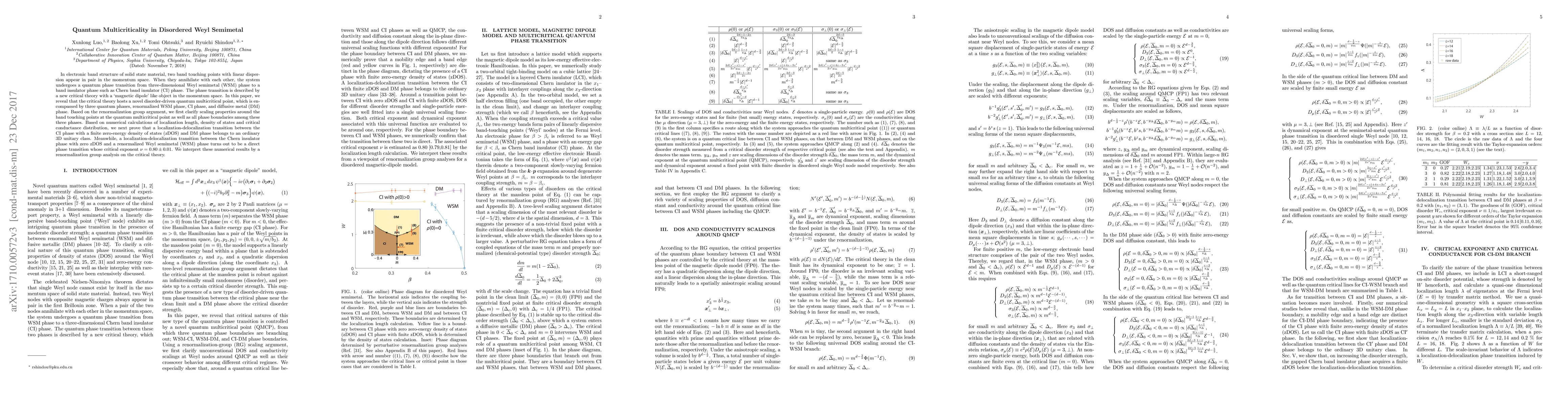 In electronic band structure of solid state material, two band touching points with linear dispersion appear in pair in the momentum space. When they annihilate with each other, the system undergoes a quantum phase transition from three-dimensional Weyl semimetal (WSM) phase to a band insulator phase such as Chern band insulator (CI) phase. The phase transition is described by a new critical theory with a `magnetic dipole' like object in the momentum space. In this paper, we reveal that the critical theory hosts a novel disorder-driven quantum multicritical point, which is encompassed by three quantum phases, renormalized WSM phase, CI phase, and diffusive metal (DM) phase. Based on the renormalization group argument, we first clarify scaling properties around the band touching points at the quantum multicritical point as well as all phase boundaries among these three phases. Based on numerical calculations of localization length, density of states and critical conductance distribution, we next prove that a localization-delocalization transition between the CI phase with a finite zero-energy density of states (zDOS) and DM phase belongs to an ordinary 3D unitary class. Meanwhile, a localization-delocalization transition between the Chern insulator phase with zero zDOS and a renormalized Weyl semimetal (WSM) phase turns out to be a direct phase transition whose critical exponent $\nu=0.80\pm 0.01$. We interpret these numerical results by a renormalization group analysis on the critical theory.