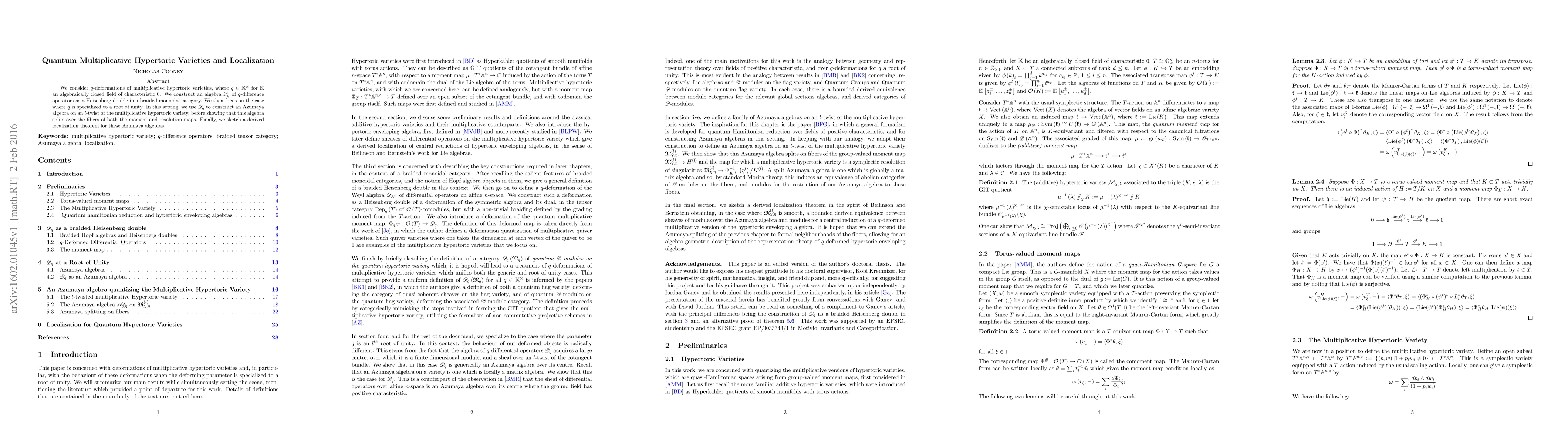We consider q-deformations of multiplicative hypertoric varieties, for q a non-zero element of an algebraically closed field of characteristic 0. We construct an algebra Dq of q-difference operators as a Heisenberg double in a braided monoidal category. We then focus on the case where q is specialized to a root of unity. In this setting, we use Dq to construct an Azumaya algebra on an l-twist of the multiplicative hypertoric variety, before showing that this algebra splits over the fibers of both the moment and resolution maps. Finally, we sketch a derived localization theorem for these Azumaya algebras.
