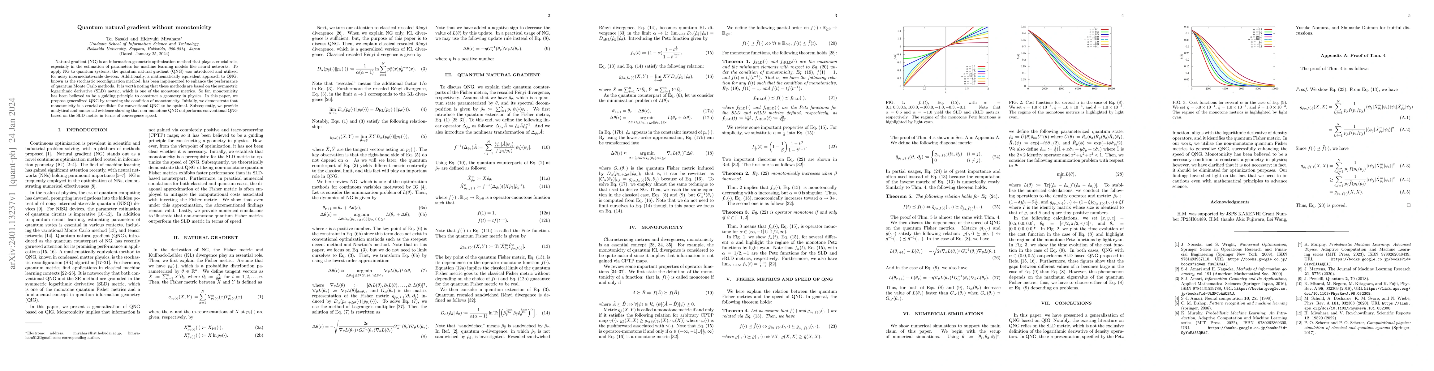 This paper proposes a generalized quantum natural gradient (QNG) method that eliminates the monotonicity condition, demonstrating that non-monotone QNG can achieve faster convergence compared to conventional QNG based on the symmetric logarithmic derivative metric.
