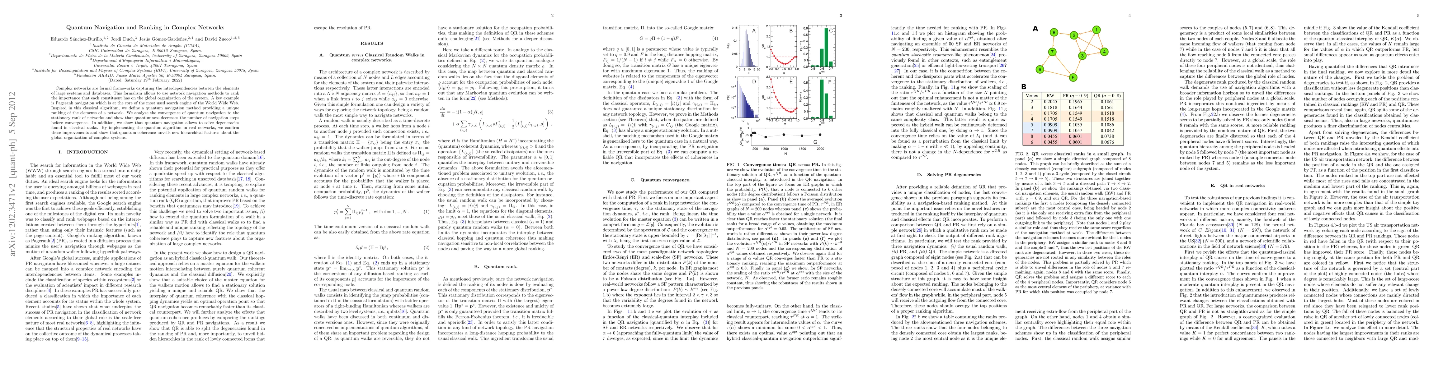 This paper introduces a quantum navigation method for ranking the importance of elements in complex networks, demonstrating that it converges faster and resolves degeneracies compared to classical methods like Pagerank. The quantum approach reveals new hierarchical features in the global organization of complex systems.