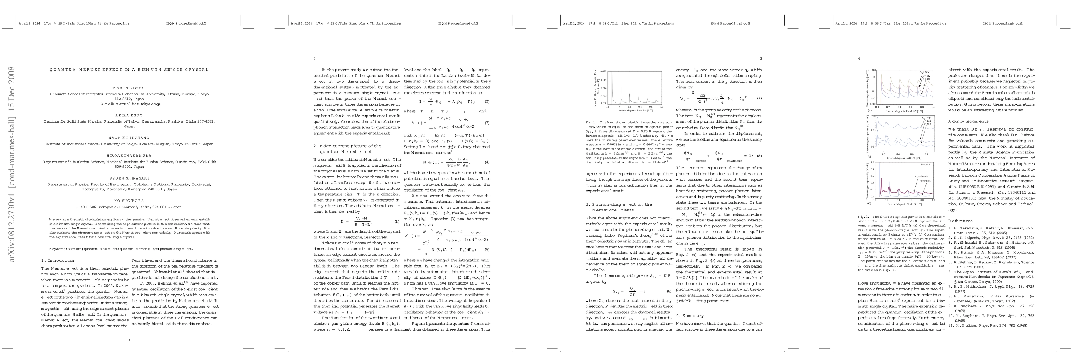 This paper theoretically explains the quantum Nernst effect in a bismuth single crystal, attributing the observed peaks in the Nernst coefficient to a van Hove singularity. It also numerically evaluates the phonon-drag effect, finding agreement with experimental observations.