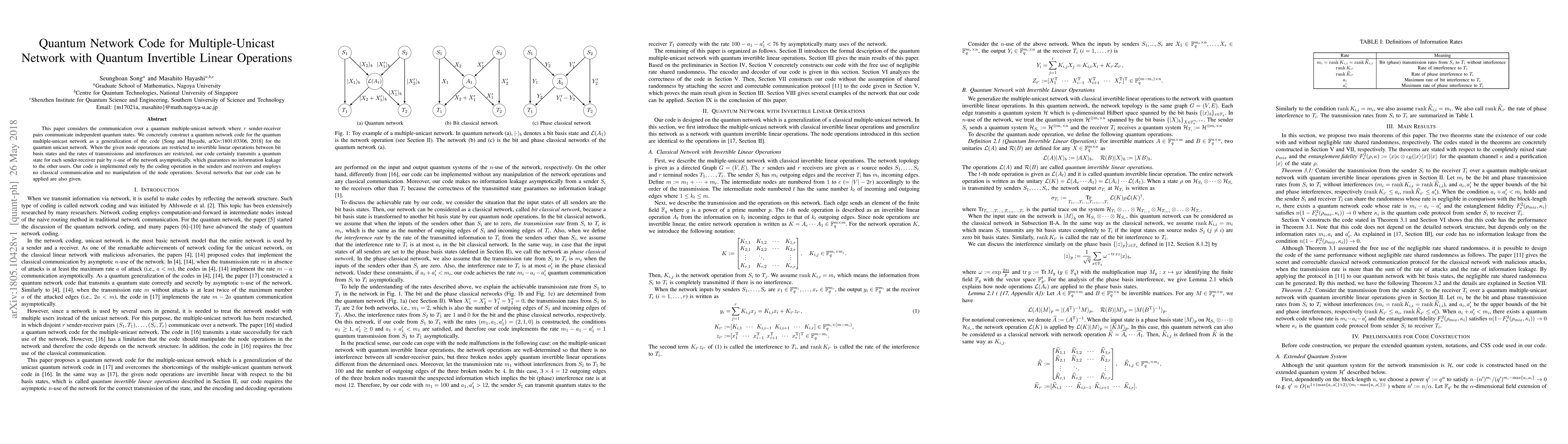 This paper constructs a quantum network code for multiple-unicast networks, ensuring secure quantum state transmission without information leakage. The code generalizes previous work and employs invertible linear operations, requiring no classical communication or node manipulation.