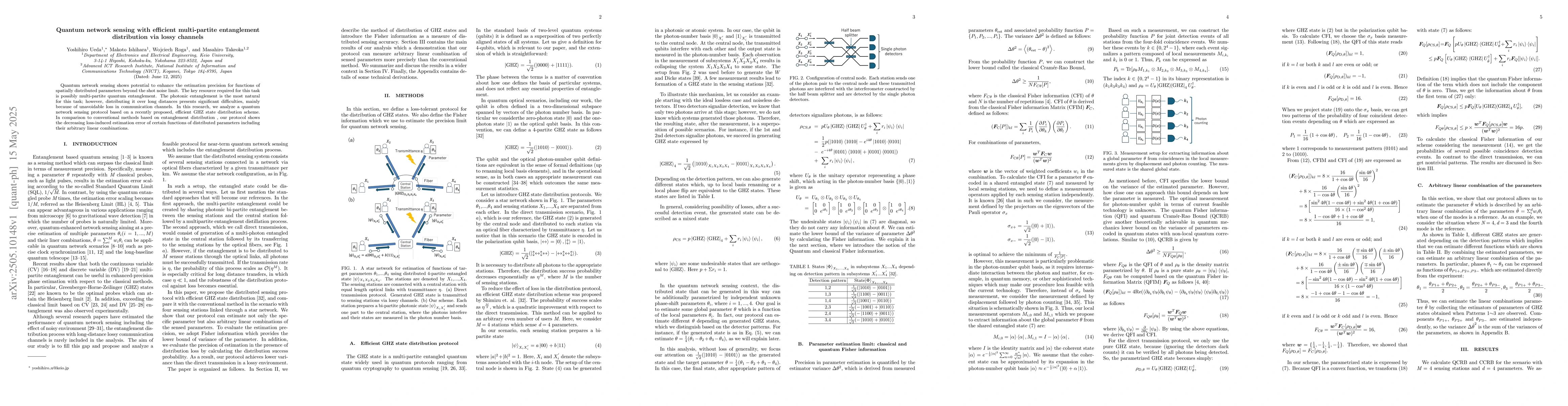 The paper presents an efficient GHZ state distribution scheme for multi-partite entanglement over lossy channels, specifically tailored for quantum network sensing applications.
