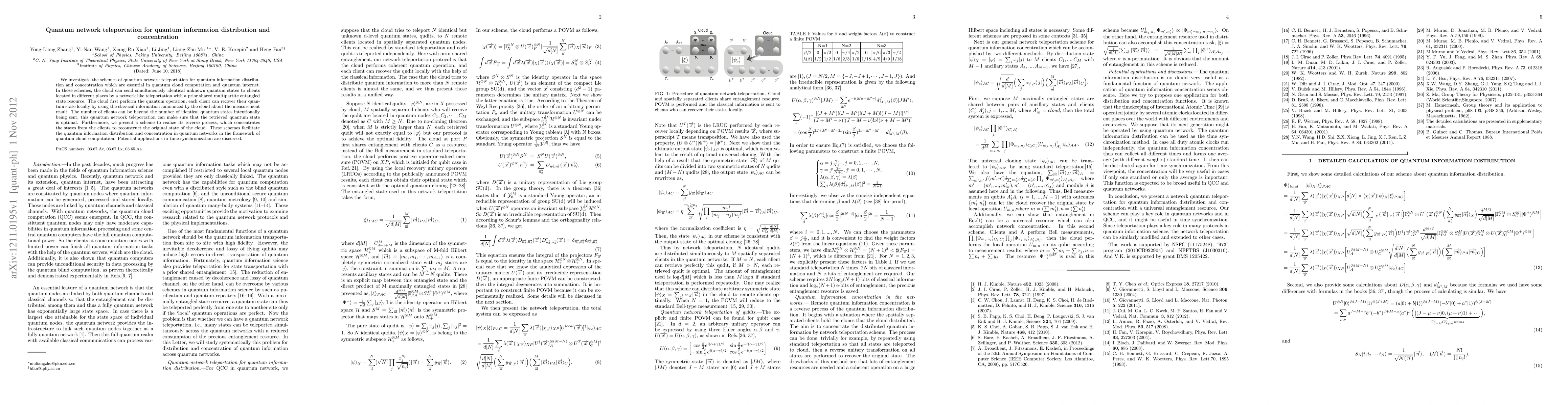 This paper explores quantum network teleportation schemes for distributing and concentrating quantum information, crucial for quantum cloud computation and quantum internet. It proposes a method where a cloud can send identical unknown quantum states to multiple clients via a network, ensuring optimal state recovery and reverse concentration processes for state reconstruction.