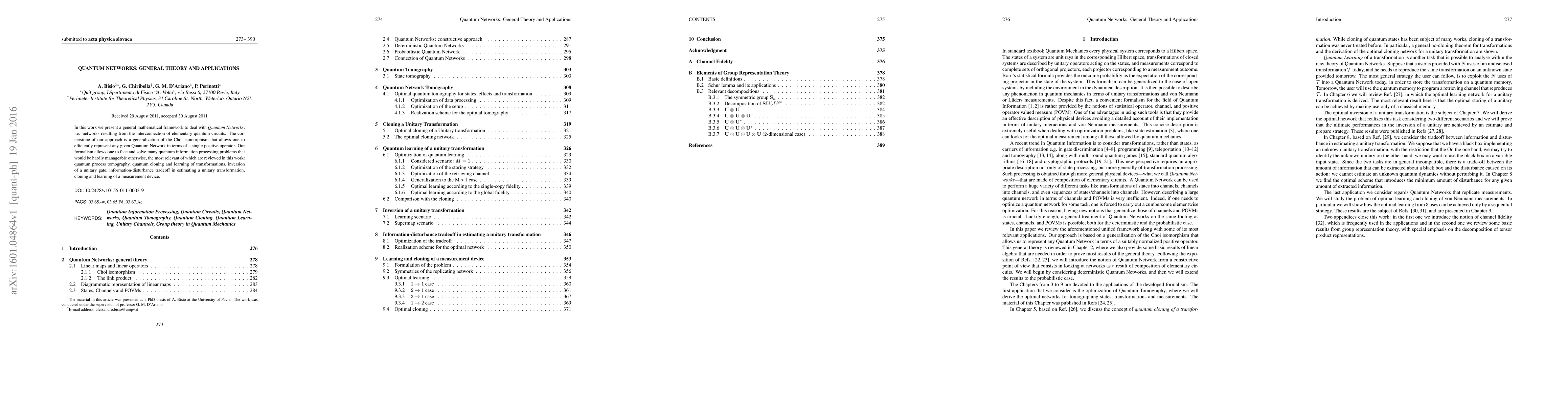 In this work we present a general mathematical framework to deal with Quantum Networks, i.e. networks resulting from the interconnection of elementary quantum circuits. The cornerstone of our approach is a generalization of the Choi isomorphism that allows one to efficiently represent any given Quantum Network in terms of a single positive operator. Our formalism allows one to face and solve many quantum information processing problems that would be hardly manageable otherwise, the most relevant of which are reviewed in this work: quantum process tomography, quantum cloning and learning of transformations, inversion of a unitary gate, information-disturbance tradeoff in estimating a unitary transformation, cloning and learning of a measurement device.