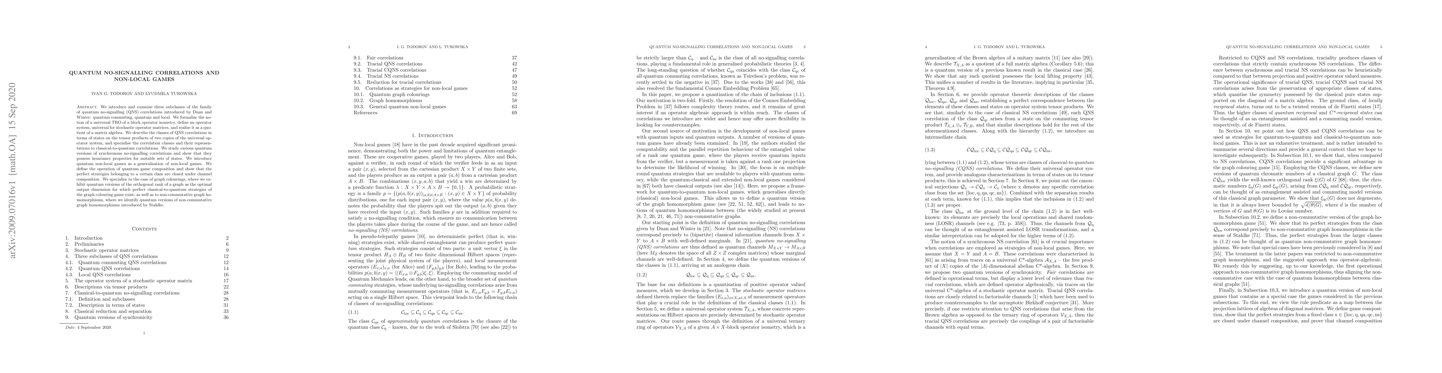 This paper explores subclasses of quantum no-signalling correlations, formalising universal operator systems, and introduces quantum non-local games. It demonstrates invariance properties for quantum synchronous no-signalling correlations and shows that perfect strategies in quantum game composition are closed under channel composition, with applications to graph colourings and non-commutative graph homomorphisms.