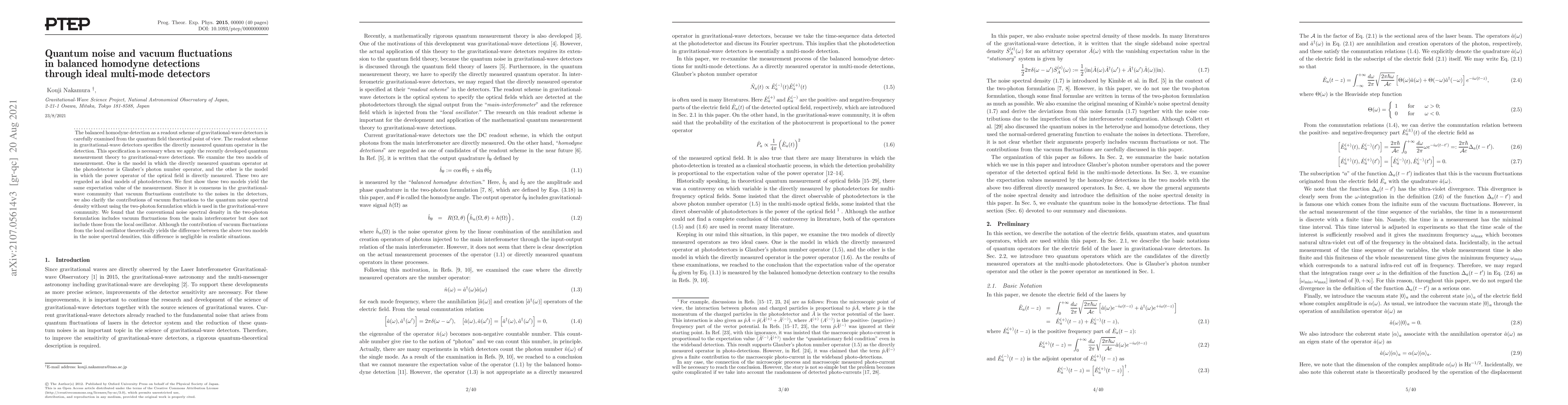 This paper explores balanced homodyne detection in gravitational-wave detectors from a quantum field theoretical perspective, comparing two ideal photodetector models. It concludes that vacuum fluctuations contribute to detector noise but that their impact from the local oscillator is negligible in practical scenarios.