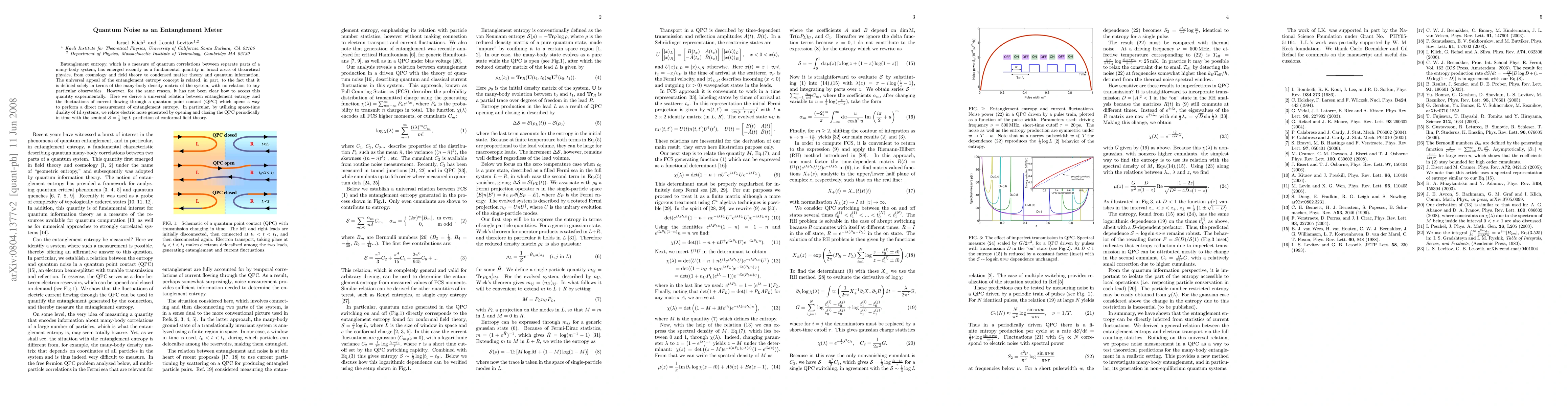Entanglement entropy, which is a measure of quantum correlations between separate parts of a many-body system, has emerged recently as a fundamental quantity in broad areas of theoretical physics, from cosmology and field theory to condensed matter theory and quantum information. The universal appeal of the entanglement entropy concept is related, in part, to the fact that it is defined solely in terms of the many-body density matrix of the system, with no relation to any particular observables. However, for the same reason, it has not been clear how to access this quantity experimentally. Here we derive a universal relation between entanglement entropy and the fluctuations of current flowing through a quantum point contact (QPC) which opens a way to perform a direct measurement of entanglement entropy. In particular, by utilizing space-time duality of 1d systems, we relate electric noise generated by opening and closing the QPC periodically in time with the seminal S = 1/3 log L prediction of conformal field theory.