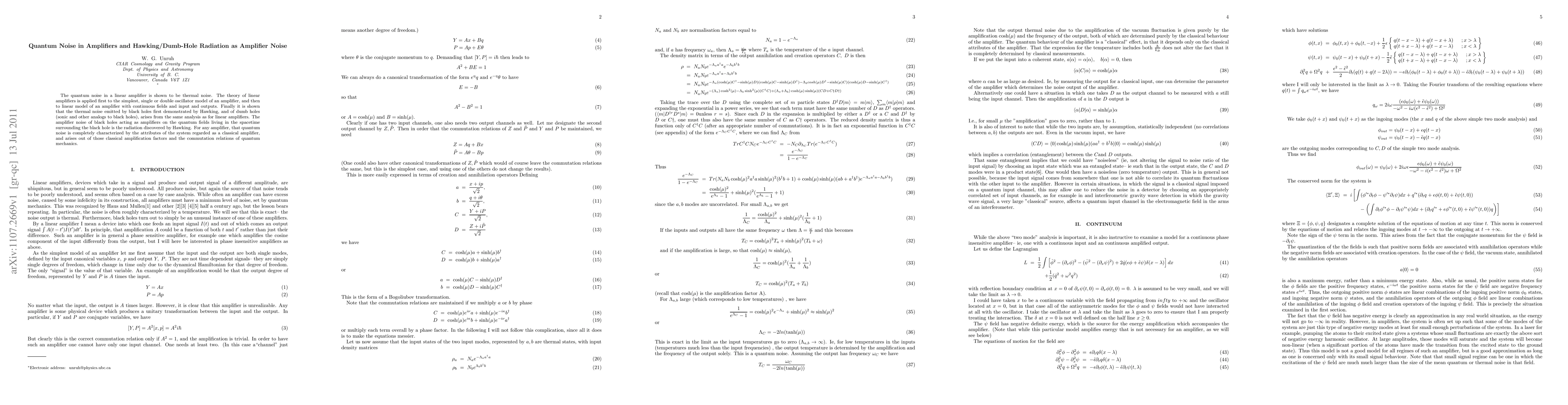 The paper presents a novel analysis linking quantum noise in amplifiers to black hole radiation, providing a theoretical foundation for understanding noise across diverse physical systems.