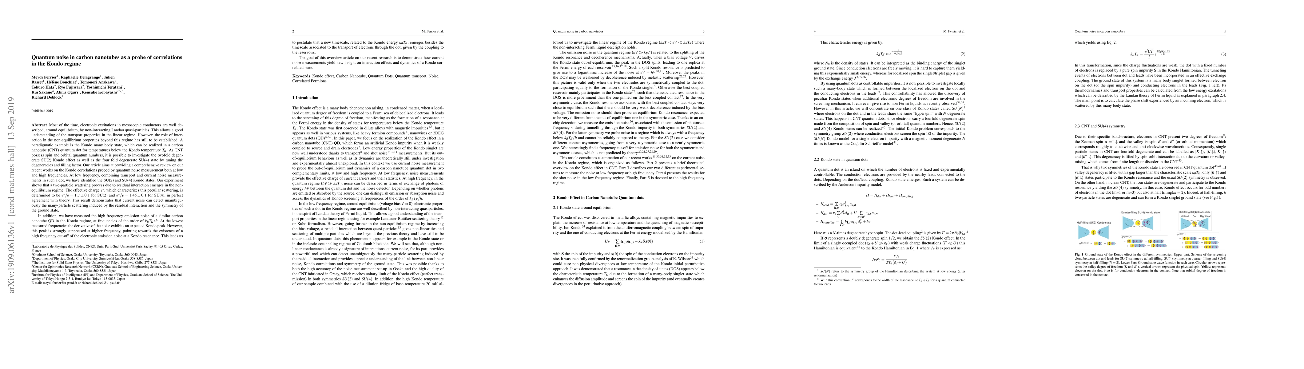 Most of the time, electronic excitations in mesoscopic conductors are well described, around equilibrium, by non-interacting Landau quasi-particles. This allows a good understanding of the transport properties in the linear regime. However, the role of interaction in the non-equilibrium properties beyond this regime has still to be established. A paradigmatic example is the Kondo many body state, which can be realized in a carbon nanotube (CNT) quantum dot for temperatures below the Kondo temperature $T_K$. As CNT possess spin and orbital quantum numbers, it is possible to investigate the twofold degenerate SU(2) Kondo effect as well as the four fold degenerate SU(4) state by tuning the degeneracies and filling factor. This article aims at providing a comprehensive review on our recent works on the Kondo correlations probed by quantum noise measurement both at low and high frequencies and demonstrate how current noise measurements yield new insight on interaction effects and dynamics of a Kondo correlated state.