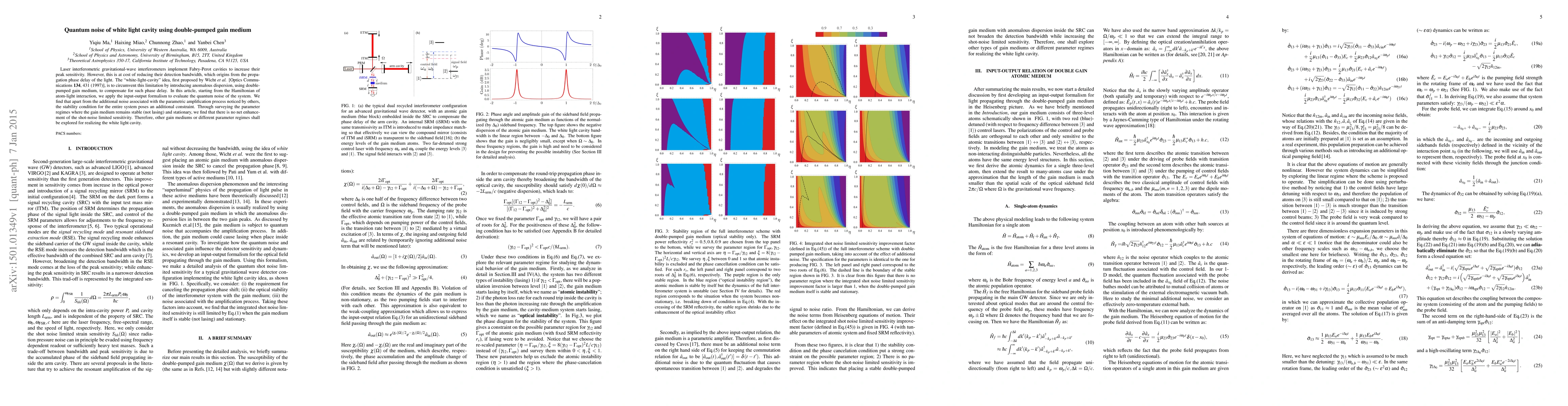 Laser interferometric gravitational-wave detectors implement Fabry-Perot cavities to increase their peak sensitivity. However, this is at cost of reducing their detection bandwidth, which origins from the propagation phase delay of the light. The "white-light-cavity" idea, first proposed by Wicht et al. [Optics Communications 134, 431 (1997)], is to circumvent this limitation by introducing anomalous dispersion, using double-pumped gain medium, to compensate for such phase delay. In this article, starting from the Hamiltonian of atom-light interaction, we apply the input-output formalism to evaluate the quantum noise of the system. We find that apart from the additional noise associated with the parametric amplification process noticed by others, the stability condition for the entire system poses an additional constraint. Through surveying the parameter regimes where the gain medium remains stable (not lasing) and stationary, we find that there is no net enhancement of the shot-noise limited sensitivity. Therefore, other gain mediums or different parameter regimes shall be explored for realizing the white light cavity.
