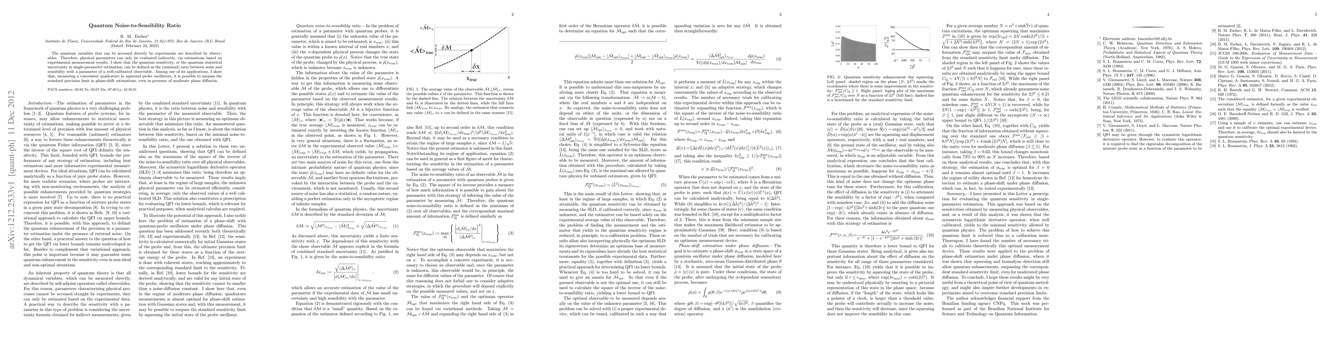 The quantum variables that can be accessed directly by experiments are described by observables. Therefore, physical parameters can only be evaluated indirectly, via estimations based on experimental measurement results. I show that the quantum sensitivity, or the quantum statistical uncertainty in single-parameter estimation, can be defined as the (minimal) ratio between noise and sensibility with a parameter of a well-calibrated observable. Among one of its applications, I show that, measuring a convenient quadrature in squeezed probe oscillators, it is possible to surpass the standard precision limit in phase-shift estimations, even in presence of moderate phase diffusion.