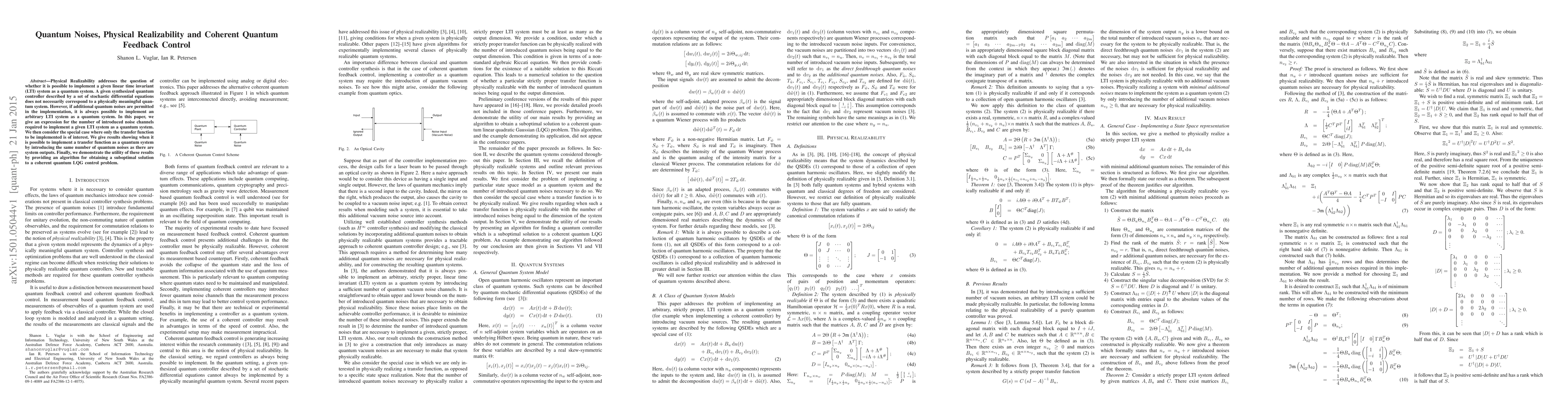 Physical Realizability addresses the question of whether it is possible to implement a given linear time invariant (LTI) system as a quantum system. A given synthesized quantum controller described by a set of stochastic differential equations does not necessarily correspond to a physically meaningful quantum system. However, if additional quantum noises are permitted in the implementation, it is always possible to implement an arbitrary LTI system as a quantum system. In this paper, we give an expression for the number of introduced noise channels required to implement a given LTI system as a quantum system. We then consider the special case where only the transfer function to be implemented is of interest. We give results showing when it is possible to implement a transfer function as a quantum system by introducing the same number of quantum noises as there are system outputs. Finally, we demonstrate the utility of these results by providing an algorithm for obtaining a suboptimal solution to a coherent quantum LQG control problem.