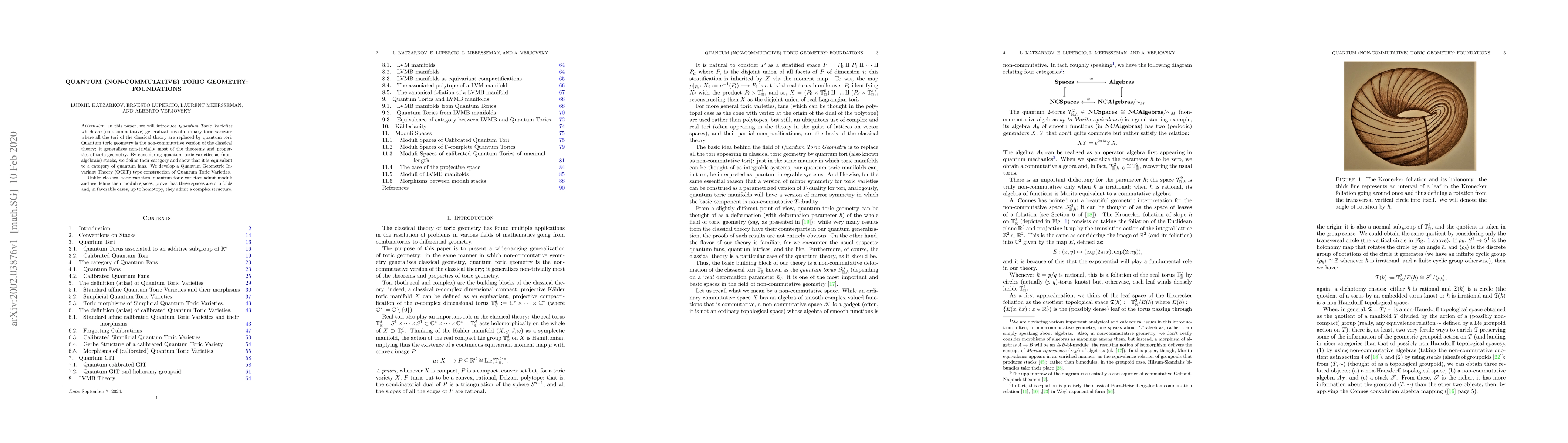 This paper introduces Quantum Toric Varieties, non-commutative extensions of classical toric varieties, and establishes their category equivalence to a category of quantum fans. It also develops Quantum Geometric Invariant Theory for these varieties and explores their moduli spaces, which are orbifolds and, in some cases, homotopy equivalent to complex structures.