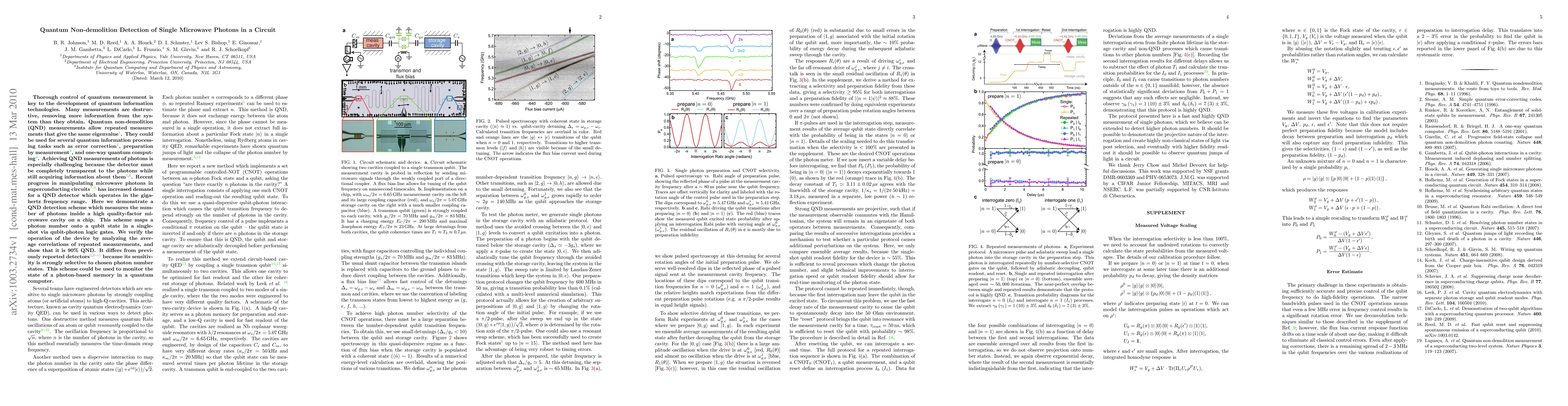 This paper demonstrates a quantum non-demolition (QND) detection scheme for single microwave photons in superconducting circuits, achieving 90% QND efficiency by mapping photon numbers onto qubit states via qubit-photon logic gates. This selective sensitivity could enable monitoring of photon-based memory states in quantum computing.