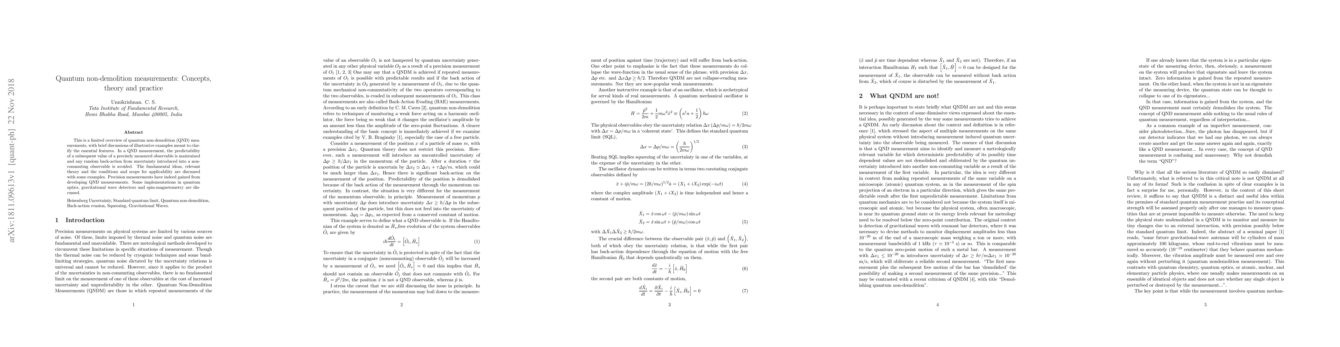 This paper provides an overview of quantum non-demolition (QND) measurements, emphasizing their ability to predict subsequent values of precisely measured observables while avoiding back-action. It discusses relevant theory and applications in quantum optics, gravitational wave detectors, and spin-magnetometry.