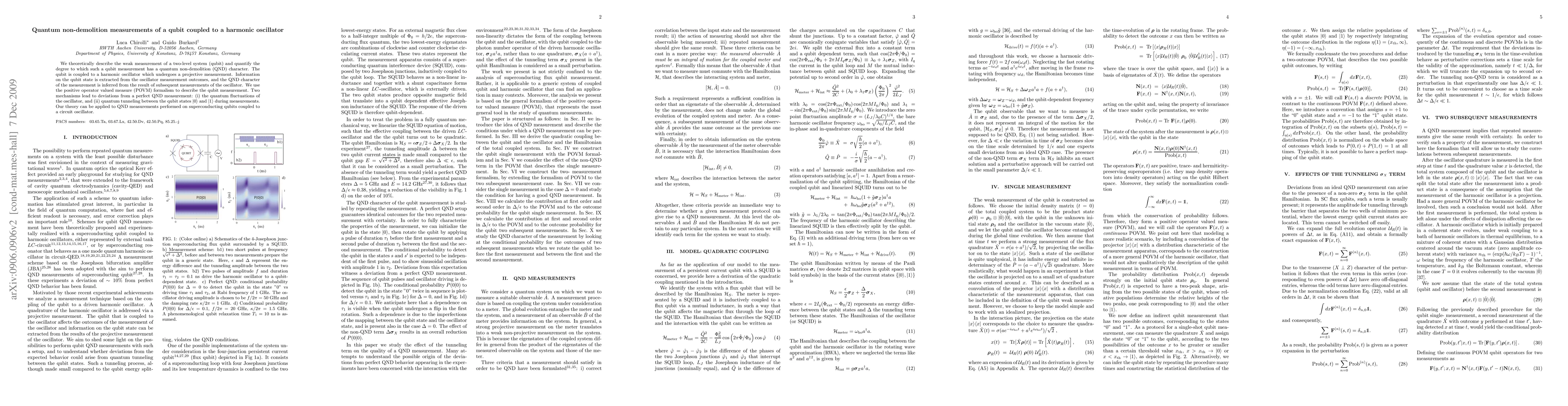 Development of a theoretical framework to analyze and quantify deviations from perfect QND measurements in qubit measurements coupled to harmonic oscillators, including first- and second-order corrections due to non-QND terms.
