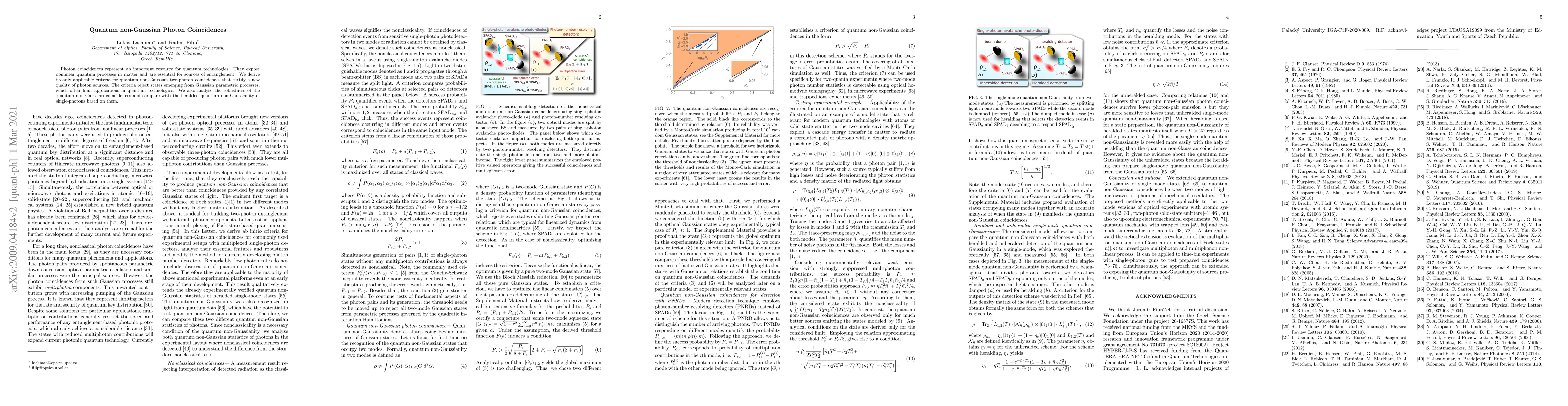 Photon coincidences represent an important resource for quantum technologies. They expose nonlinear quantum processes in matter and are essential for sources of entanglement. We derive broadly applicable criteria for quantum non-Gaussian two-photon coincidences that certify a new quality of photon sources. The criteria reject states emerging from Gaussian parametric processes, which often limit applications in quantum technologies. We also analyse the robustness of the quantum non-Gaussian coincidences and compare with the heralded quantum non-Gaussianity of single-photons based on them.