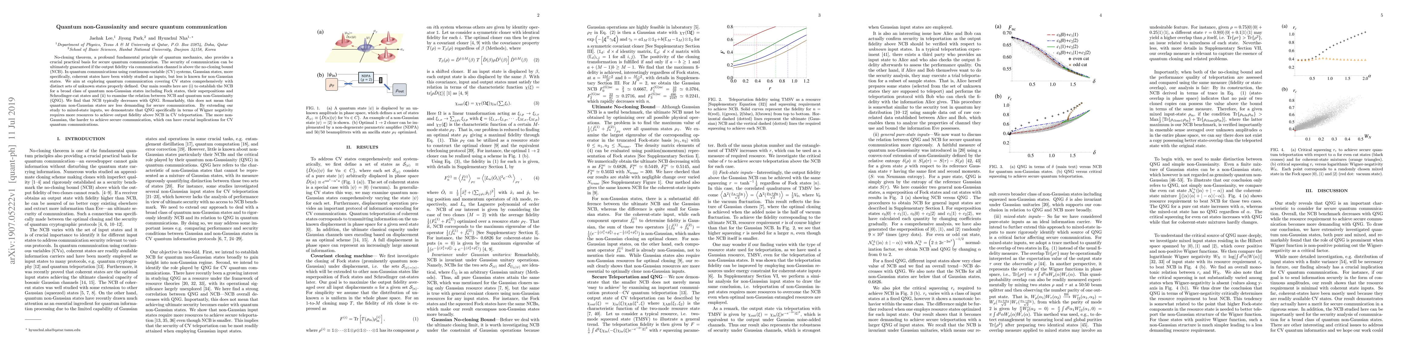 This paper explores secure quantum communication using continuous-variable systems, focusing on the no-cloning bound (NCB) for non-Gaussian states. It establishes the NCB for various non-Gaussian states and finds that while quantum non-Gaussianity (QNG) generally lowers the NCB, it requires more resources to achieve secure communication, especially in terms of Wigner negativity.